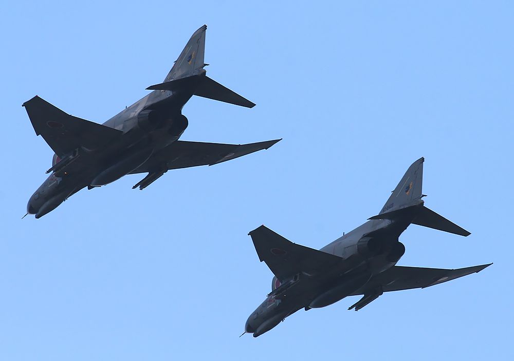 これはデモフライト(編隊飛行)を終えて ライトターンするF4とF15です。