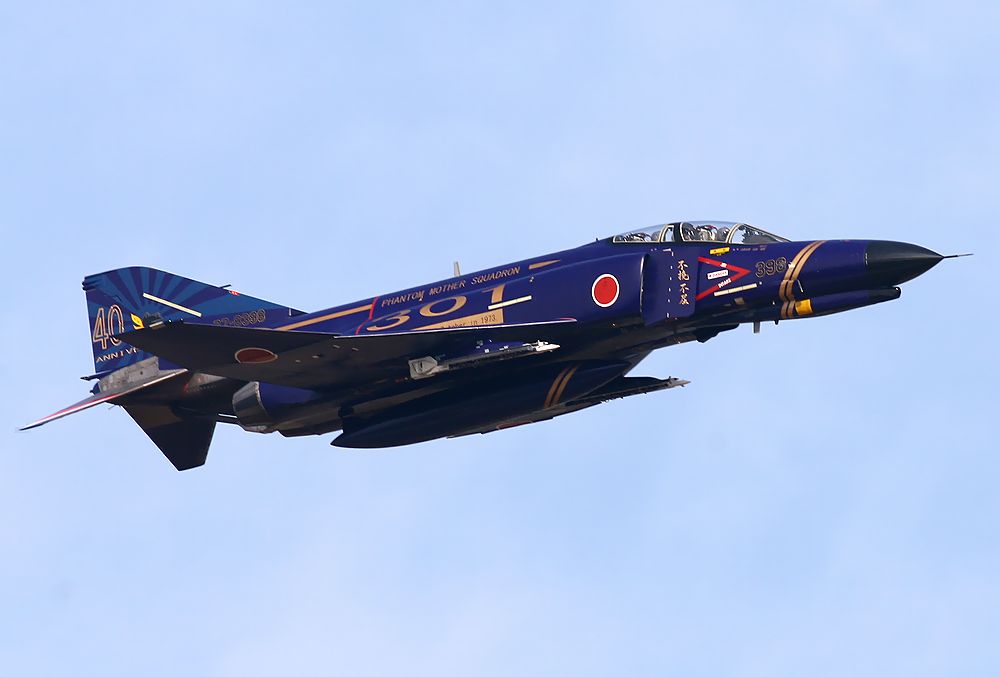 これは301飛行隊創設40周年記念塗装のF4のデモフライトです。