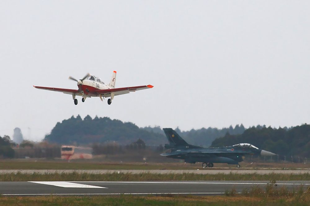 これは新田原基地航空祭終了後に、防府基地に帰るT7初等練習機です。