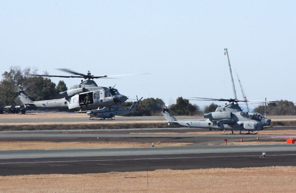 米海兵隊の UH-1Yヴェノム3機 と AH-1Z