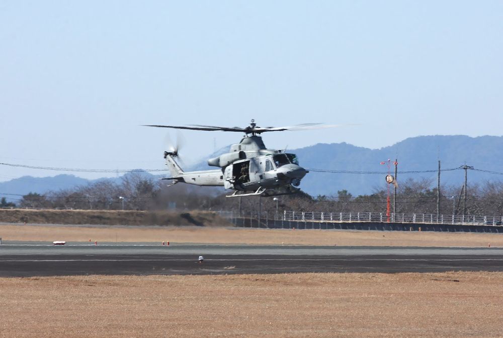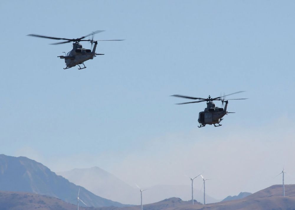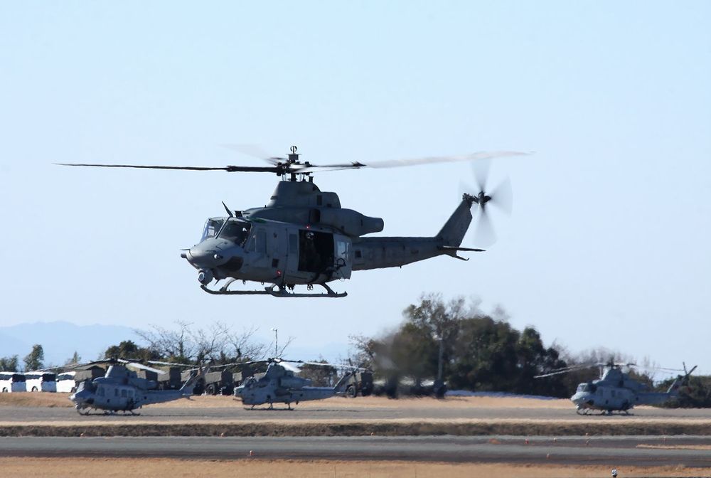 米海兵隊の UH-1Yヴェノム3機 と AH-1Z