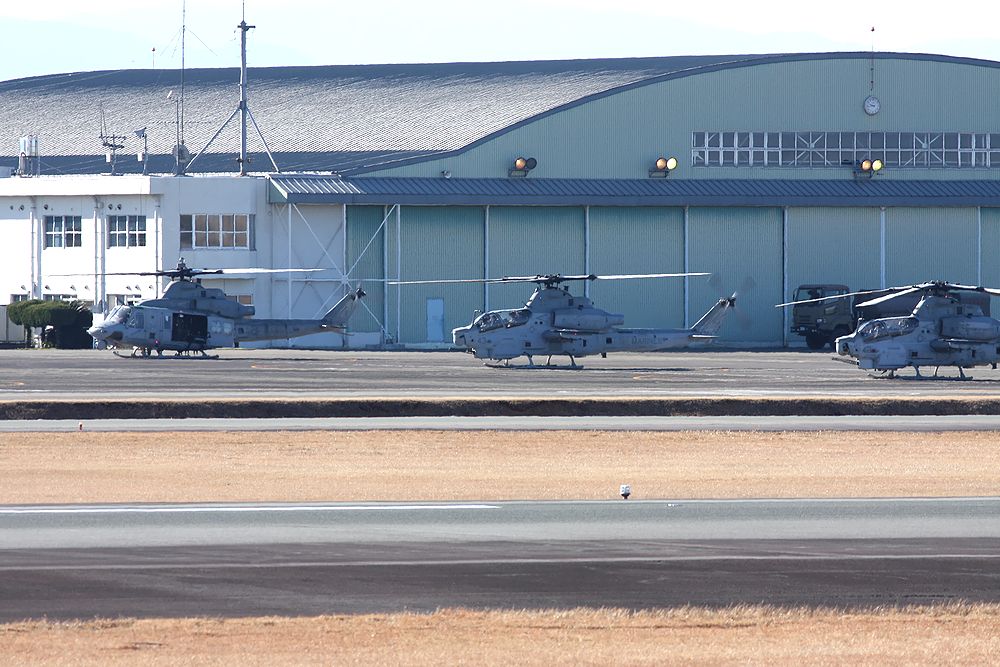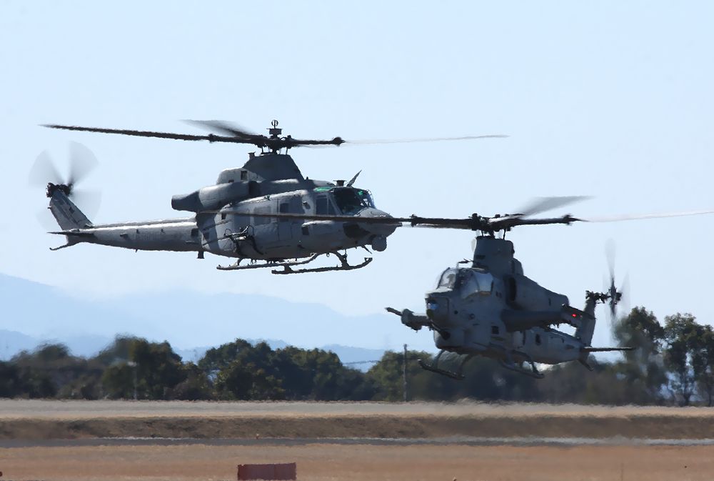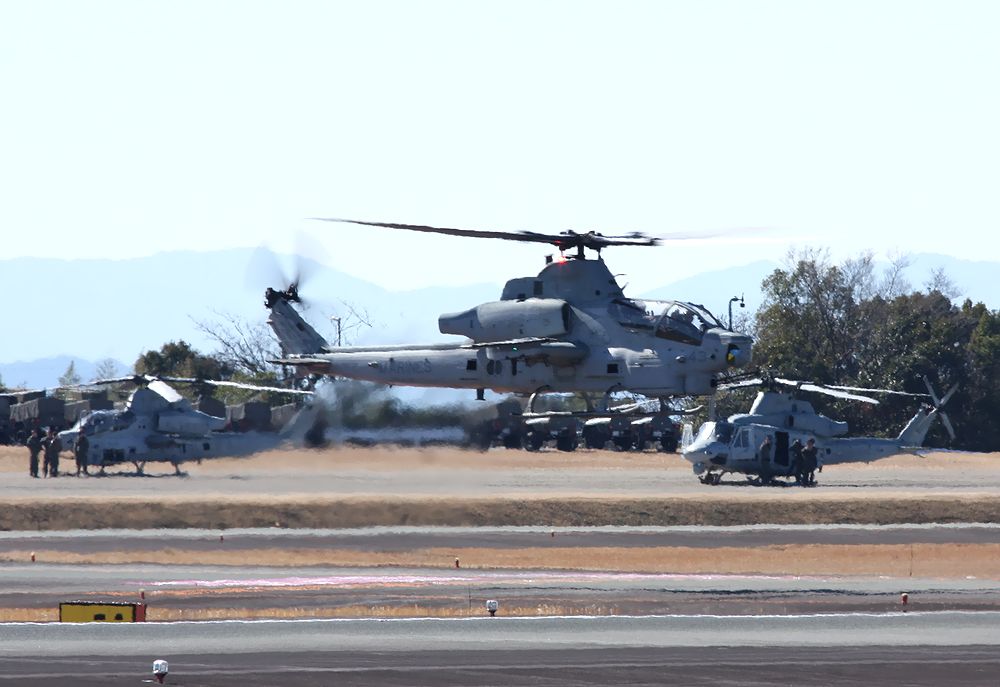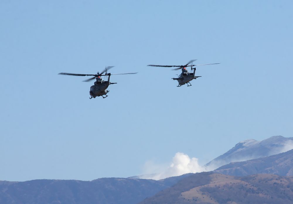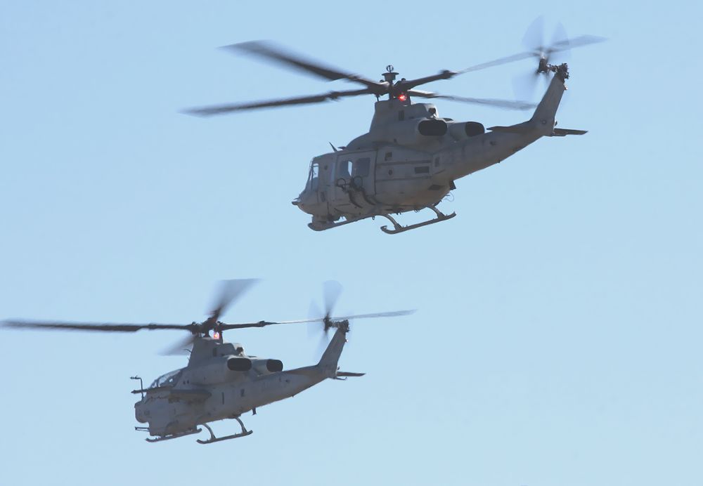 米海兵隊の UH-1Yヴェノム3機 と AH-1Z