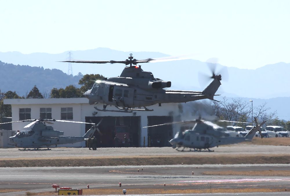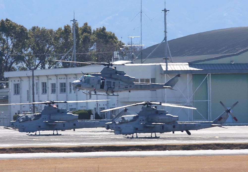米海兵隊の UH-1Yヴェノム3機 と AH-1Z