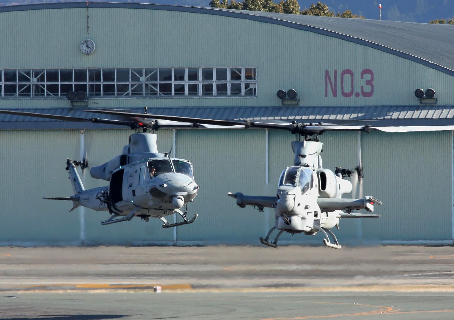 米海兵隊の UH-1Yヴェノム3機 と AH-1Z
