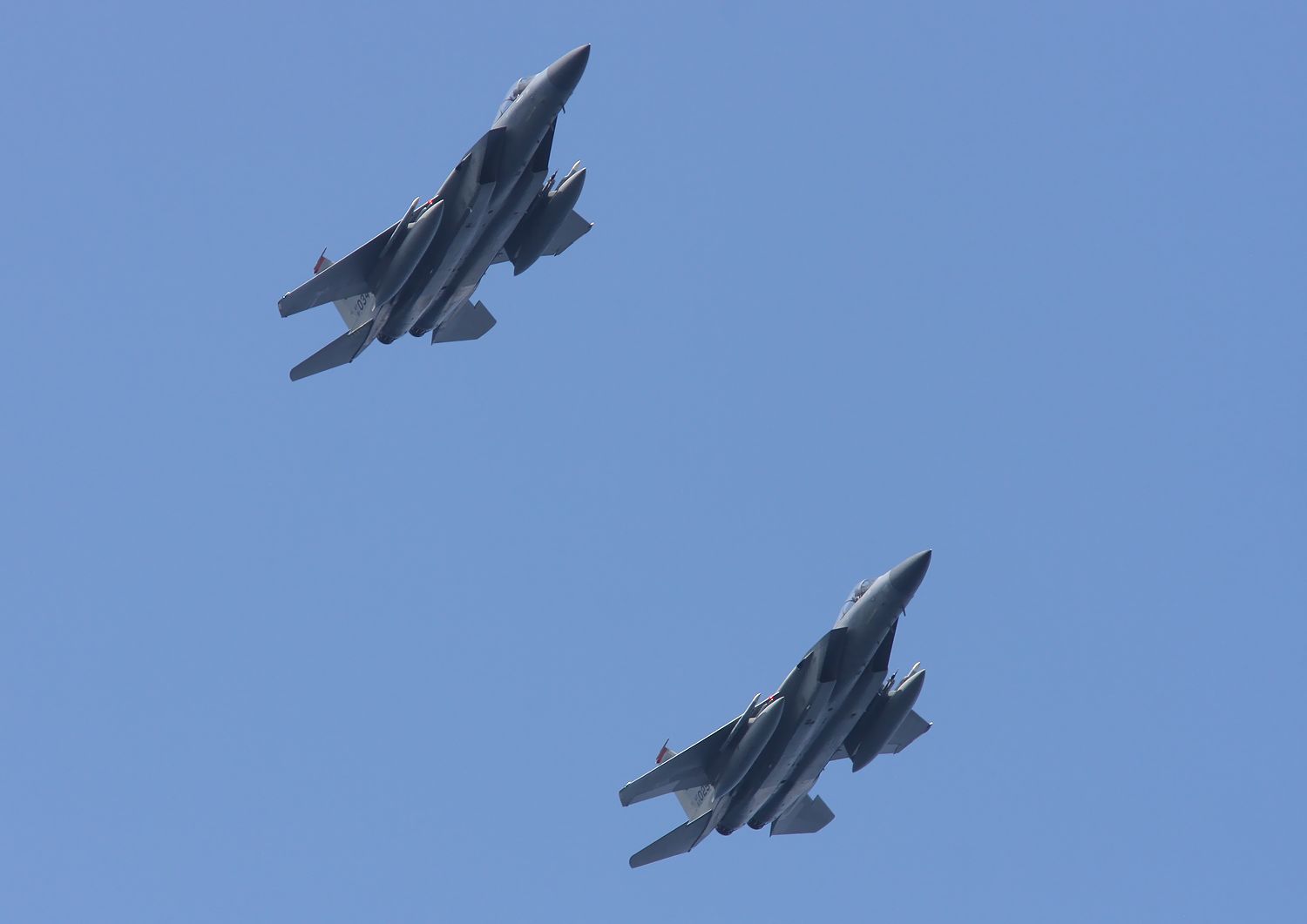 また、2023年4月8日(土)には米国ノースカロライナ州のシーモア・ジョンソン空軍基地からF15Eストライクイーグル戦闘爆撃機8機が暫定配備されました。