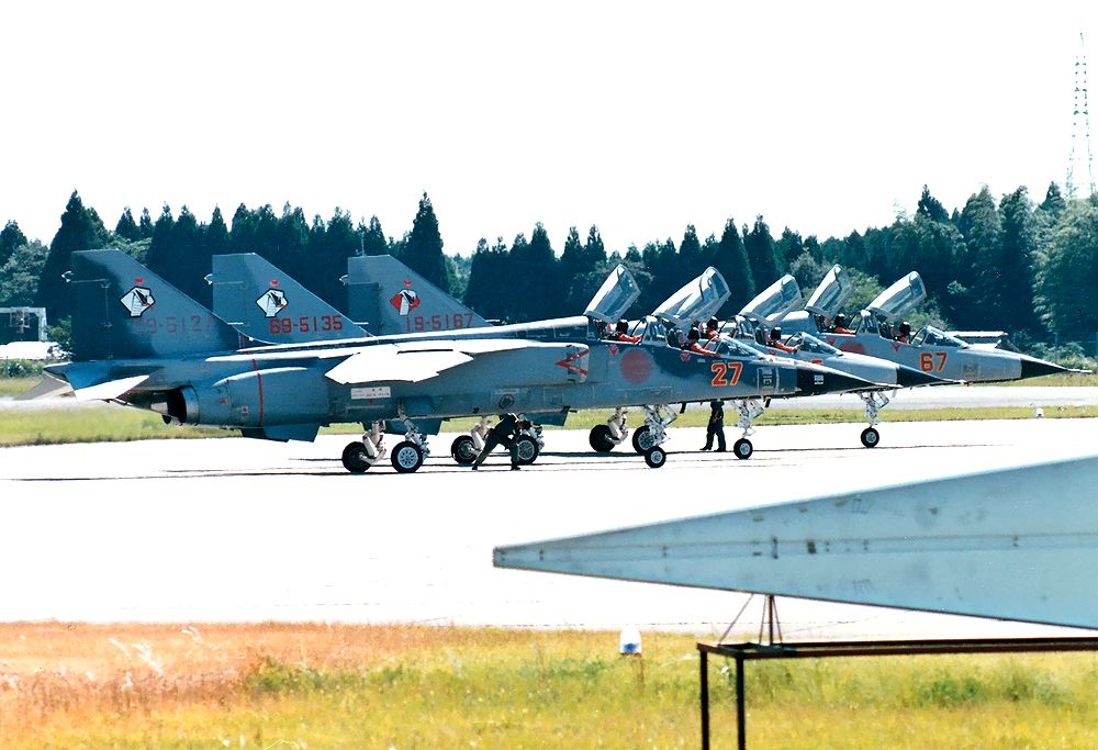 ・1986年10月3日(月) ※ 1986年9月2日にT2AGR(171号機)が墜落し、新田原基地は 1ヶ月間の飛行停止となりました。 (同年6月16日には、同基地のF4EJファントム2機が墜落しました。) この日が、 新田原基地の飛行再開日でした。 RW28エンド タキシ―