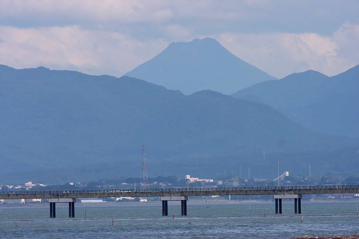築城基地の漁港ポイントから、中津市、由布岳がきれいに望めました。