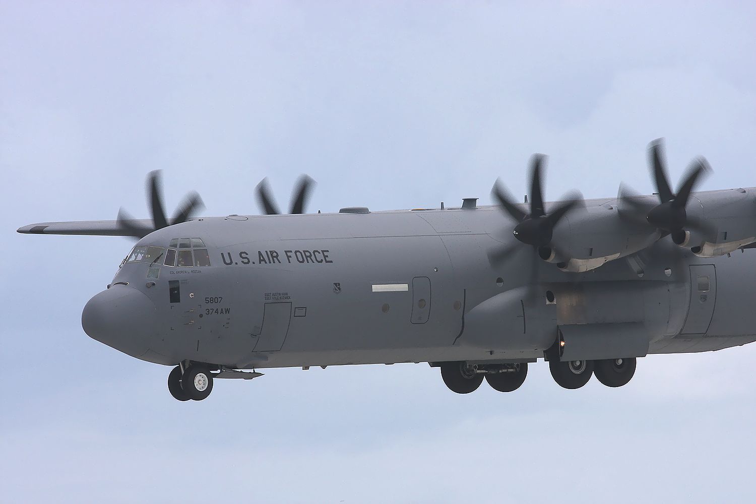 AM10:15 横田基地 C-130J(YJ)の飛来、着陸