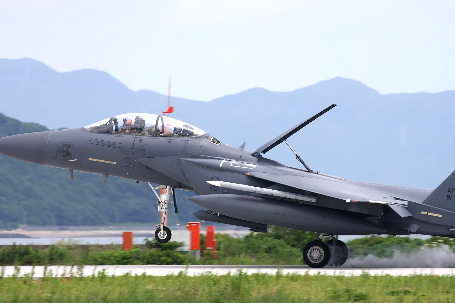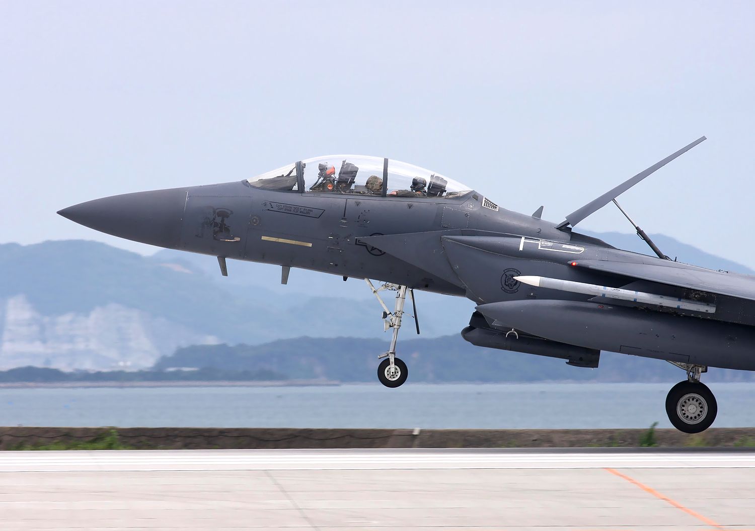 2023年7月13日(木) 築城基地 堤防ポイントにて AM7:50 RW07上がり 航空自衛隊築城基地のF2 と 米軍のEA18G(2機) 及び F15E(SJ4機・MO2機) との訓練が始まりました。