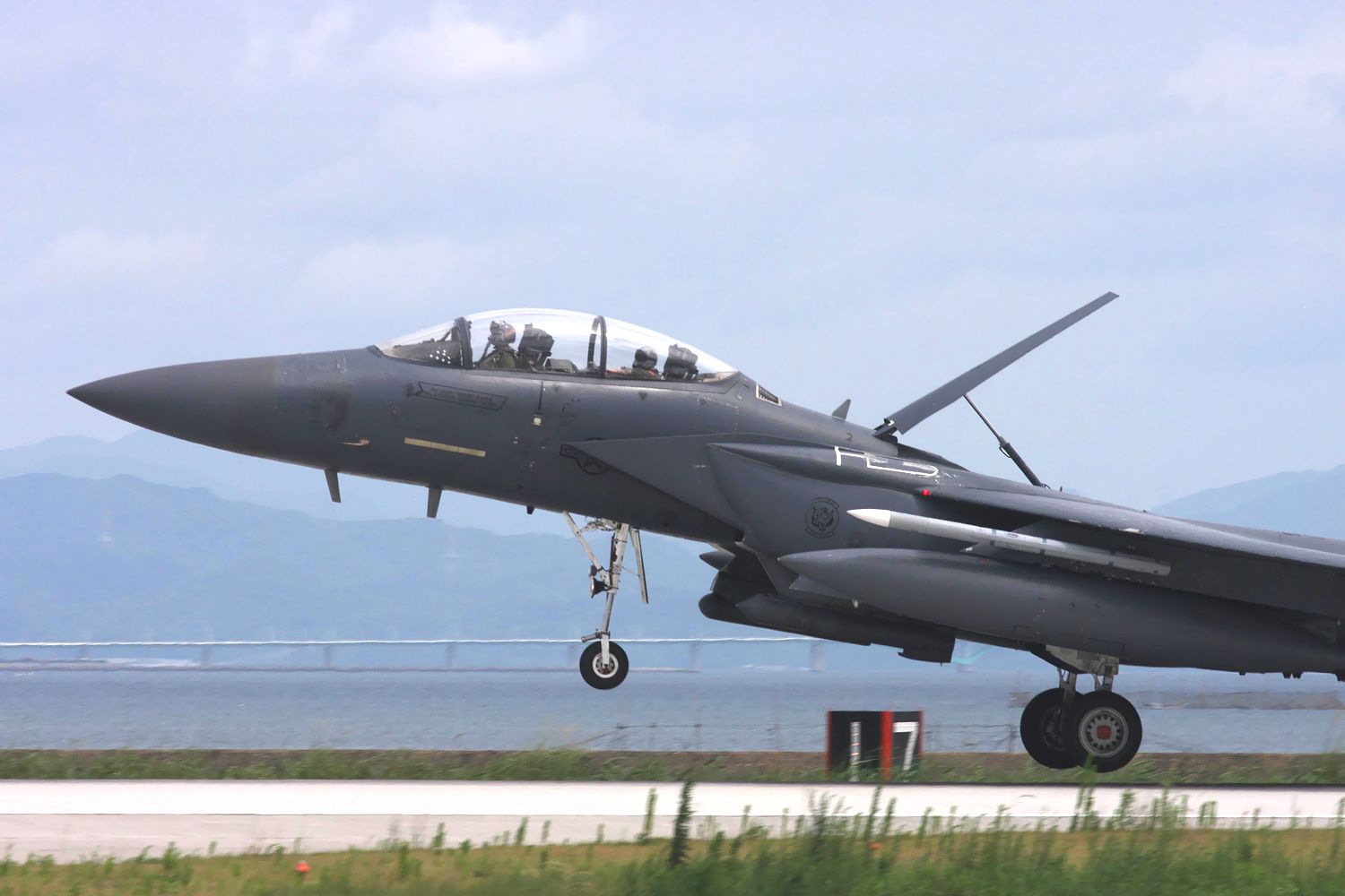 2023年7月13日(木) 築城基地 堤防ポイントにて AM7:50 RW07上がり 航空自衛隊築城基地のF2 と 米軍のEA18G(2機) 及び F15E(SJ4機・MO2機) との訓練が始まりました。