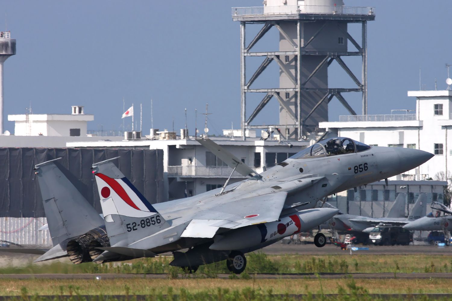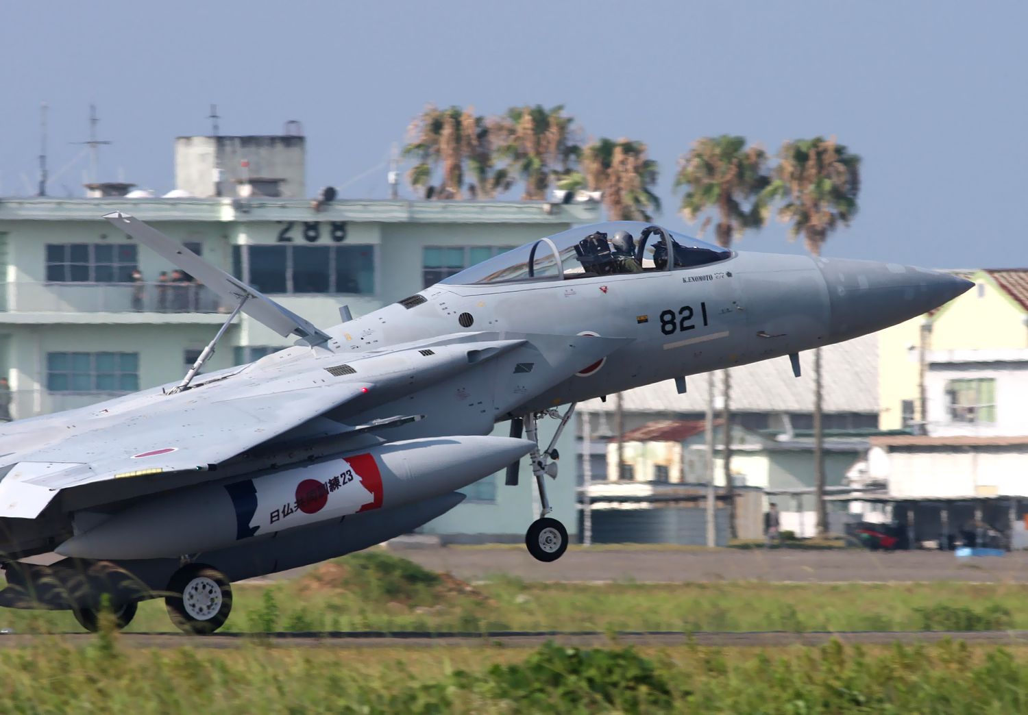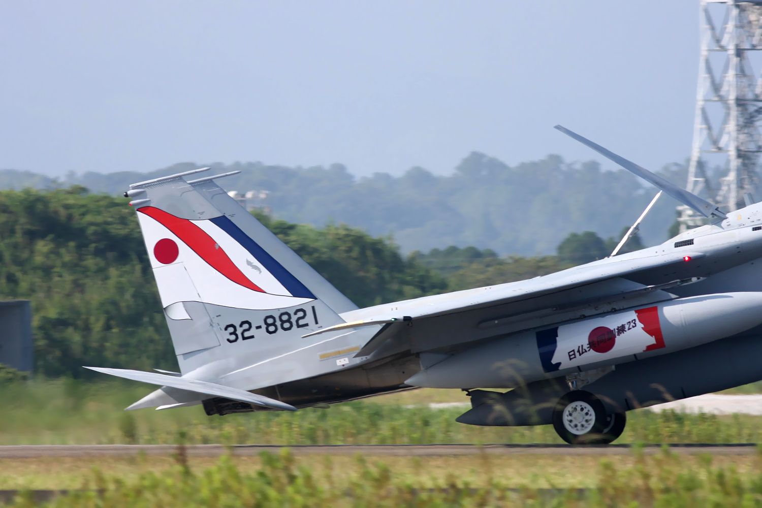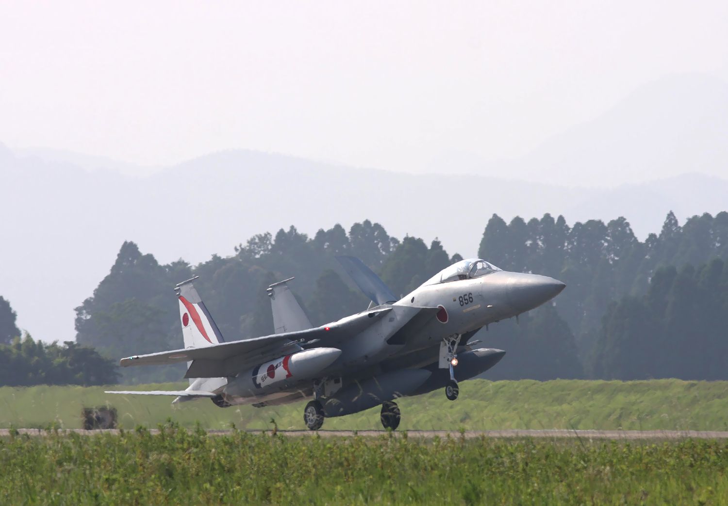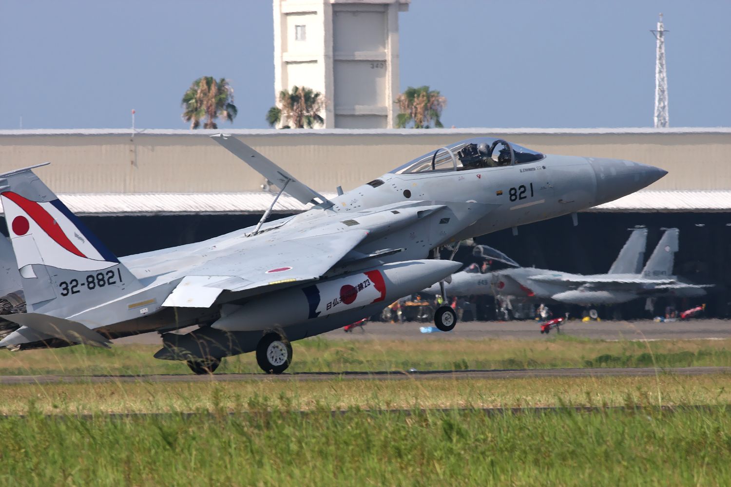 新田原基地 305SQ-F15J (特別塗装機) の 着陸・タキシ―。