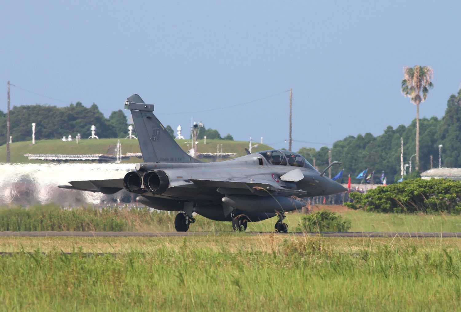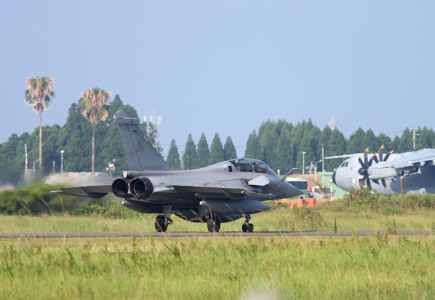 7月28日(金)には、仏空軍機は、先の航空自衛隊機と一緒に新田原基地を離陸し、入間基地と埼玉県所沢航空記念公園周辺上空を午前10:45〜午前11:30の間、展示飛行を行い、新田原基地に戻りました。