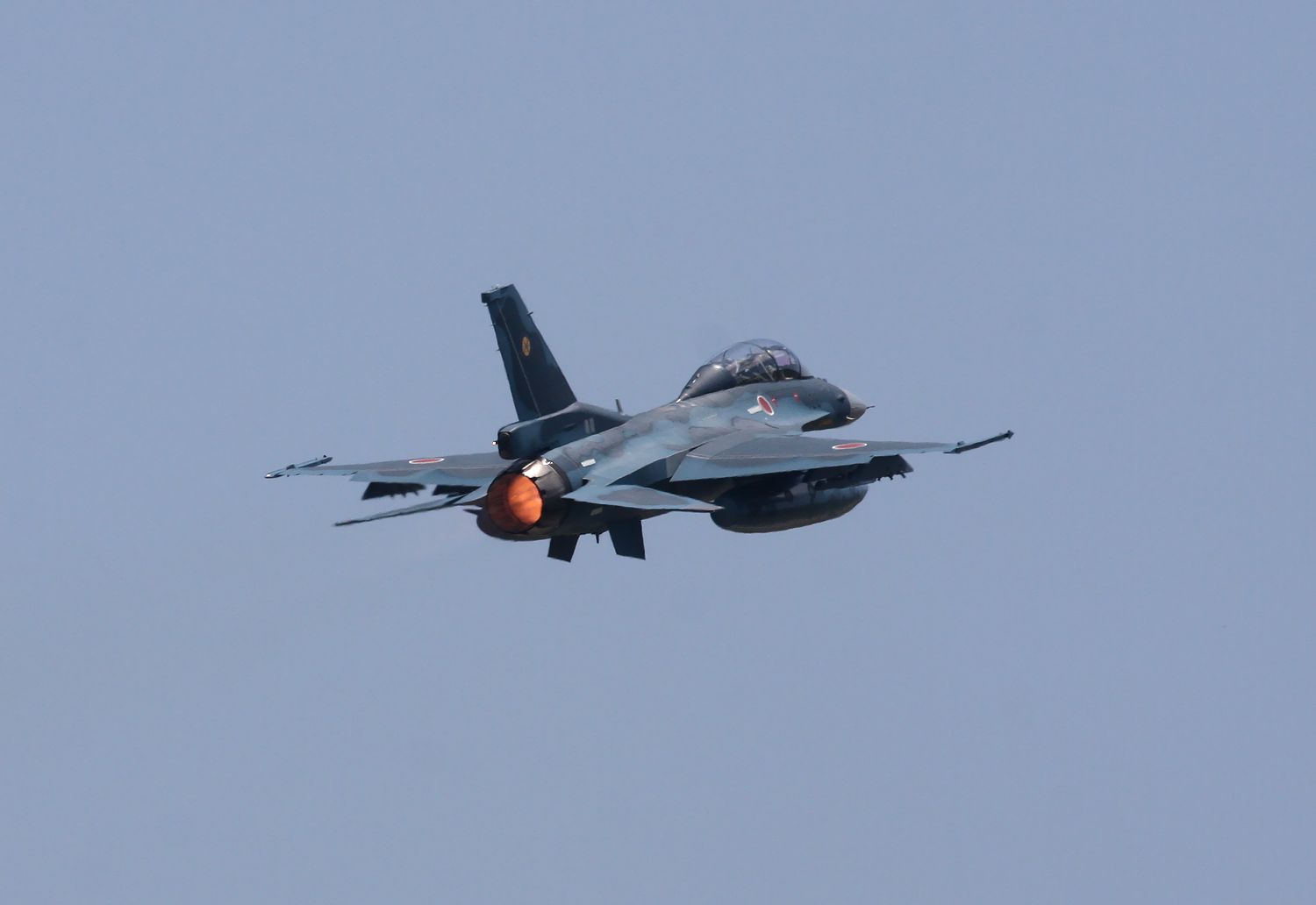 2023年7月27日(木) 新田原基地 南側フェンス ポイントにて AM10:50 RW10上がり 晴れ 真夏の日射のために、RW上は陽炎でかなり揺らいでいます。 RW上の機体に、AFのピントが合いません(><)。 フランス空軍 ラファール との 第1回目のDACT 航空自衛隊からは、305SQのF15が2機、6SQのF2Bが2機、参加しました。 築城基地 6SQ F2B×2機 の離陸です。