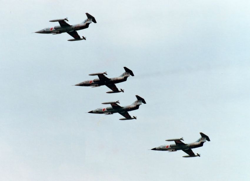 この日も、沖縄から来たばかりの防錆塗装をした4機のF104Jが、新田原基地上空をフィンガーチップ隊形で飛んでいました。