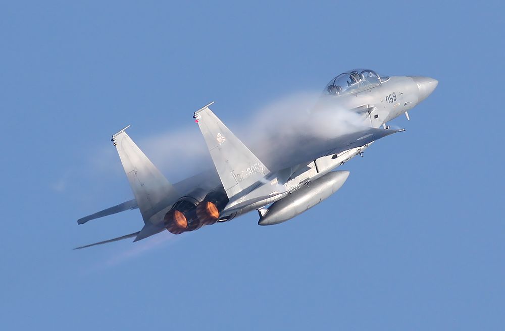 これはこれは2016年12月3(土)の新田原基地航空祭前日の予行演習です。 これはこの日飛んだRF4、F15、F16のベイパーです。各機、かなりの高機動飛行を行ったようです(@@)。