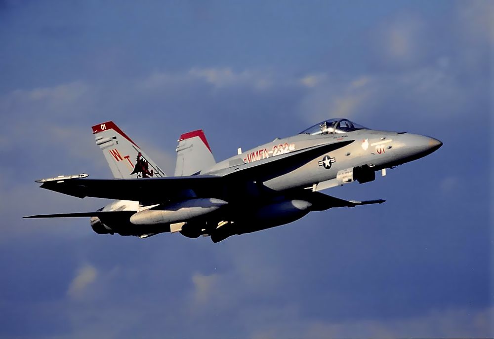 これは1997年11月30日に新田原基地航空祭終了後に岩国基地に帰る米海兵隊のFA18です。