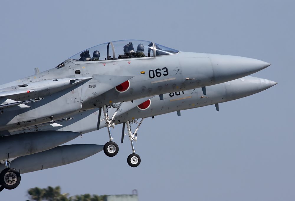 これは、2016年3月15日に新田原基地で撮影した23SQのF15の編隊離陸です。
