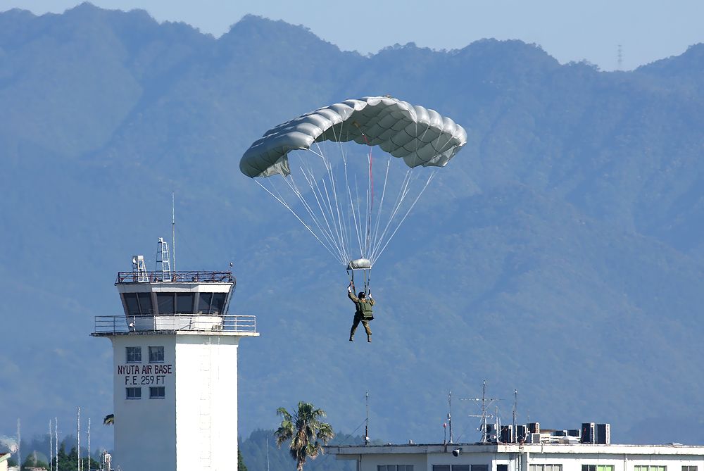 これは2016年5月12日(木)に新田原基地にて撮影した新田原基地救難隊の降下訓練です。