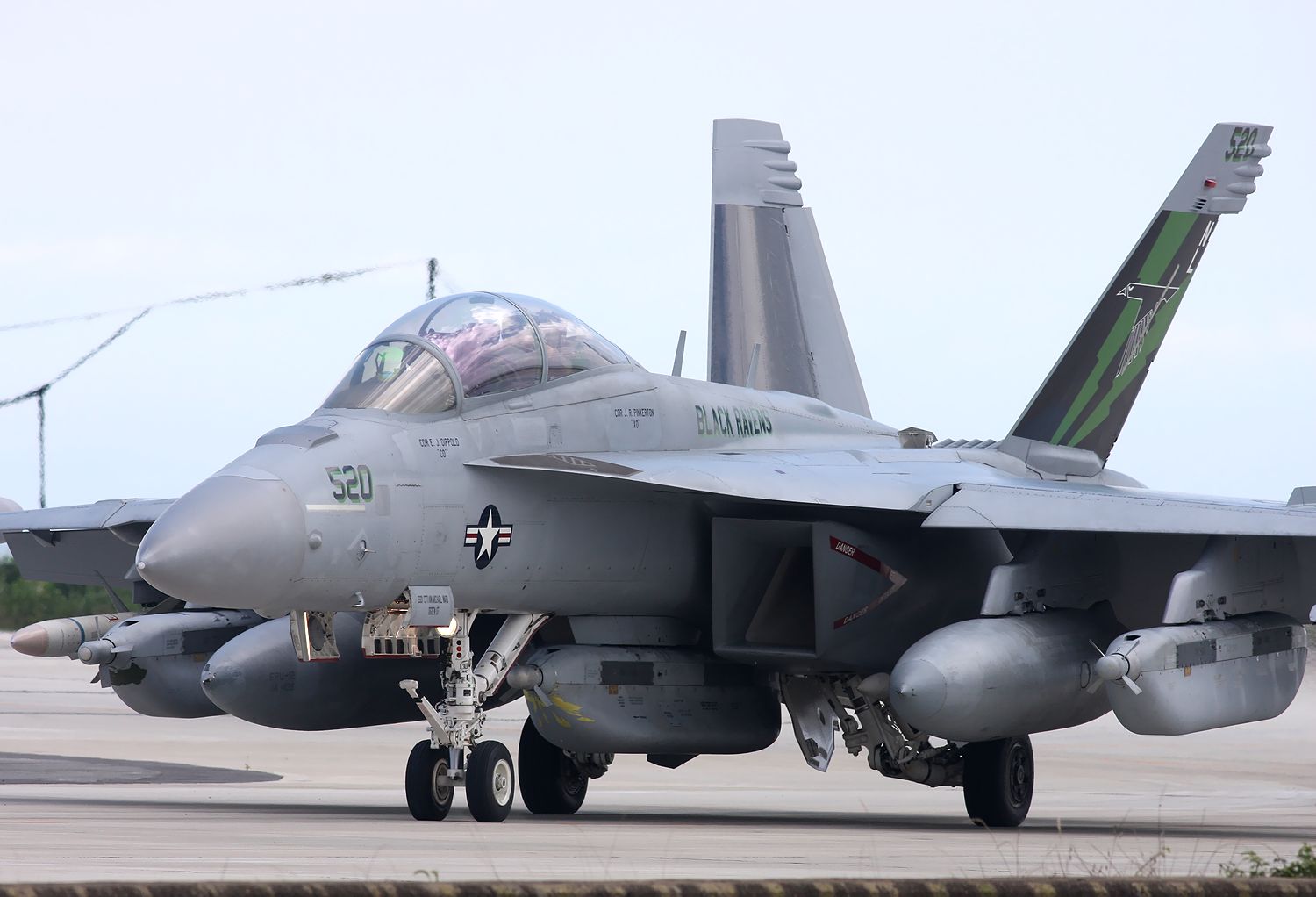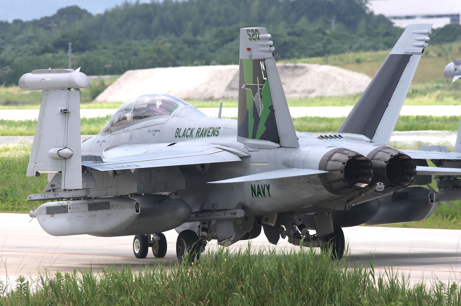 これは、2023年7月11日(火)に、築城基地の堤防ポイントにて撮影した、米軍三沢基地の米海軍EA18G電子攻撃機の離陸です。