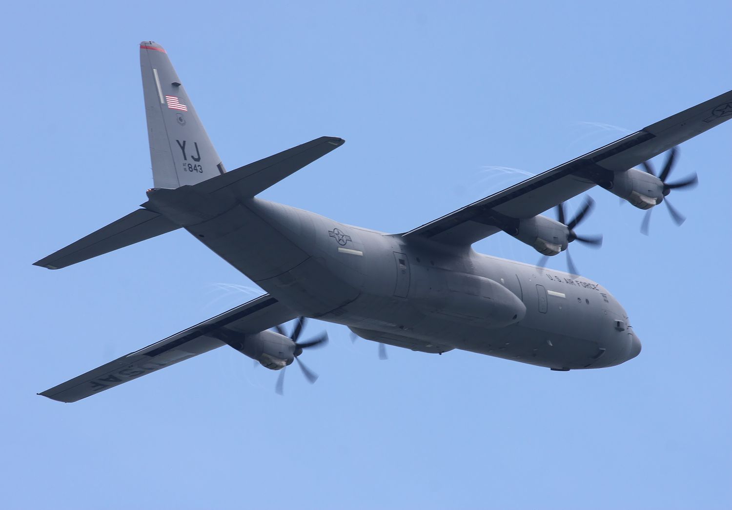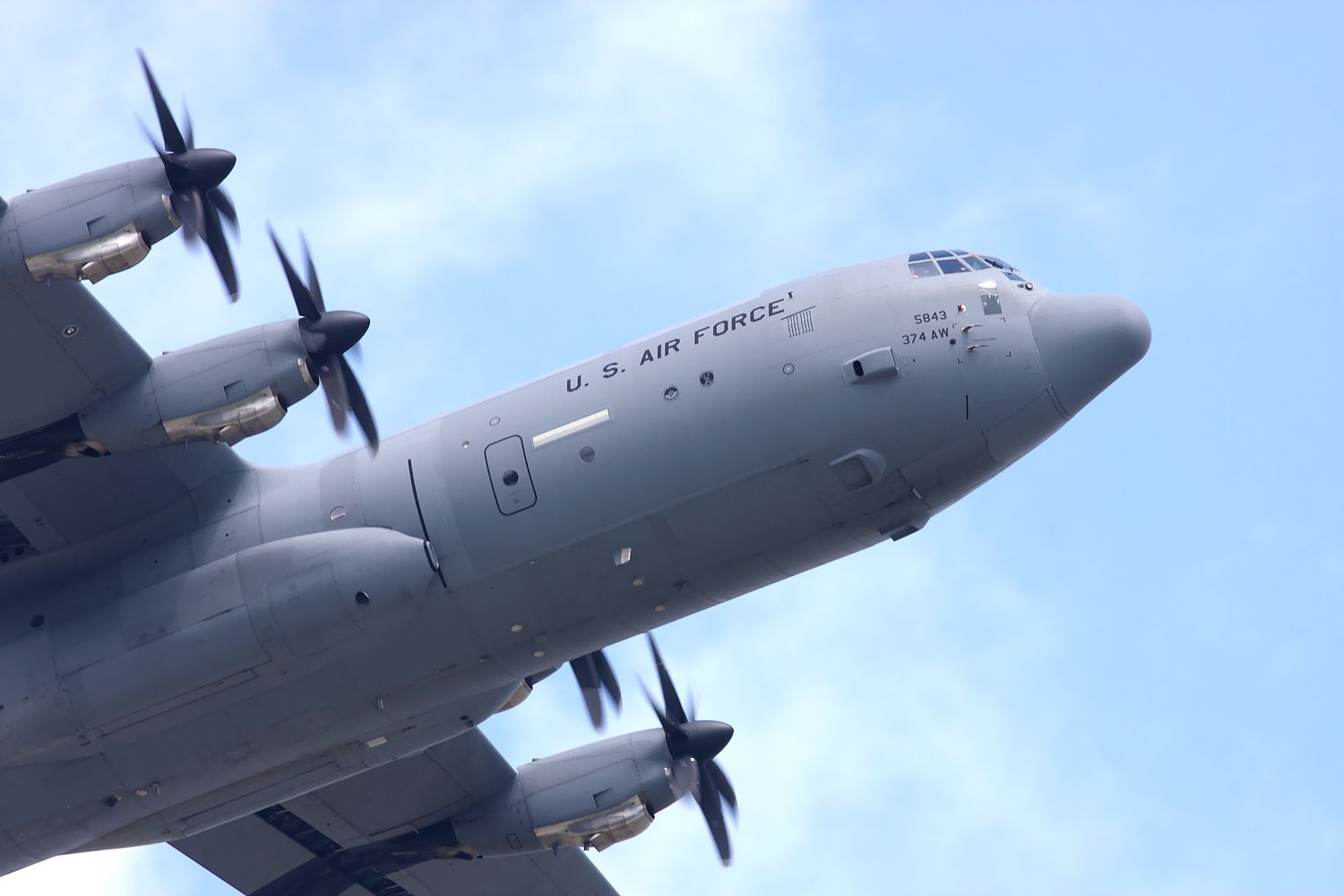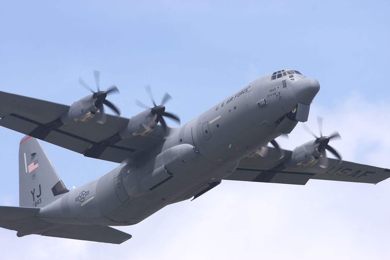 これは、2023年7月11日(火)に、築城基地の堤防ポイントにて撮影した、米空軍 横田基地 第374空輸航空団 C130J-30の離陸です。