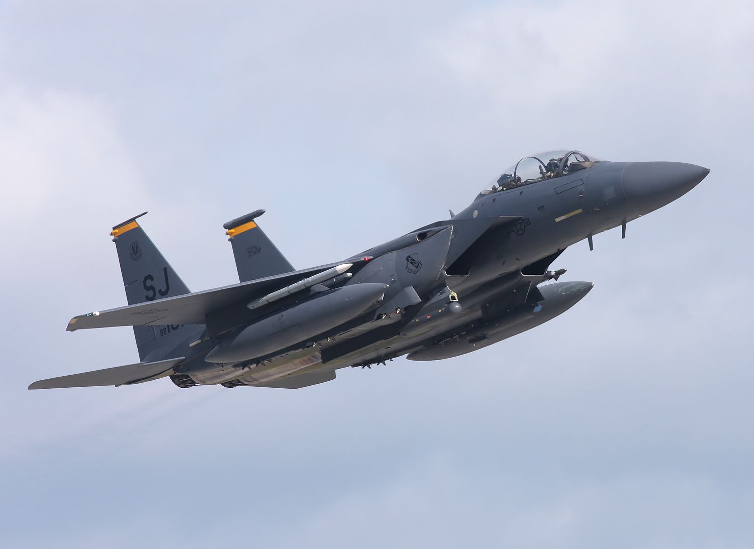 これは、2023年7月13日(木)に、築城基地の堤防ポイントにて撮影した、米空軍シーモア・ジョンソン空軍基地(SJ)の F15Eのローアプローチです。