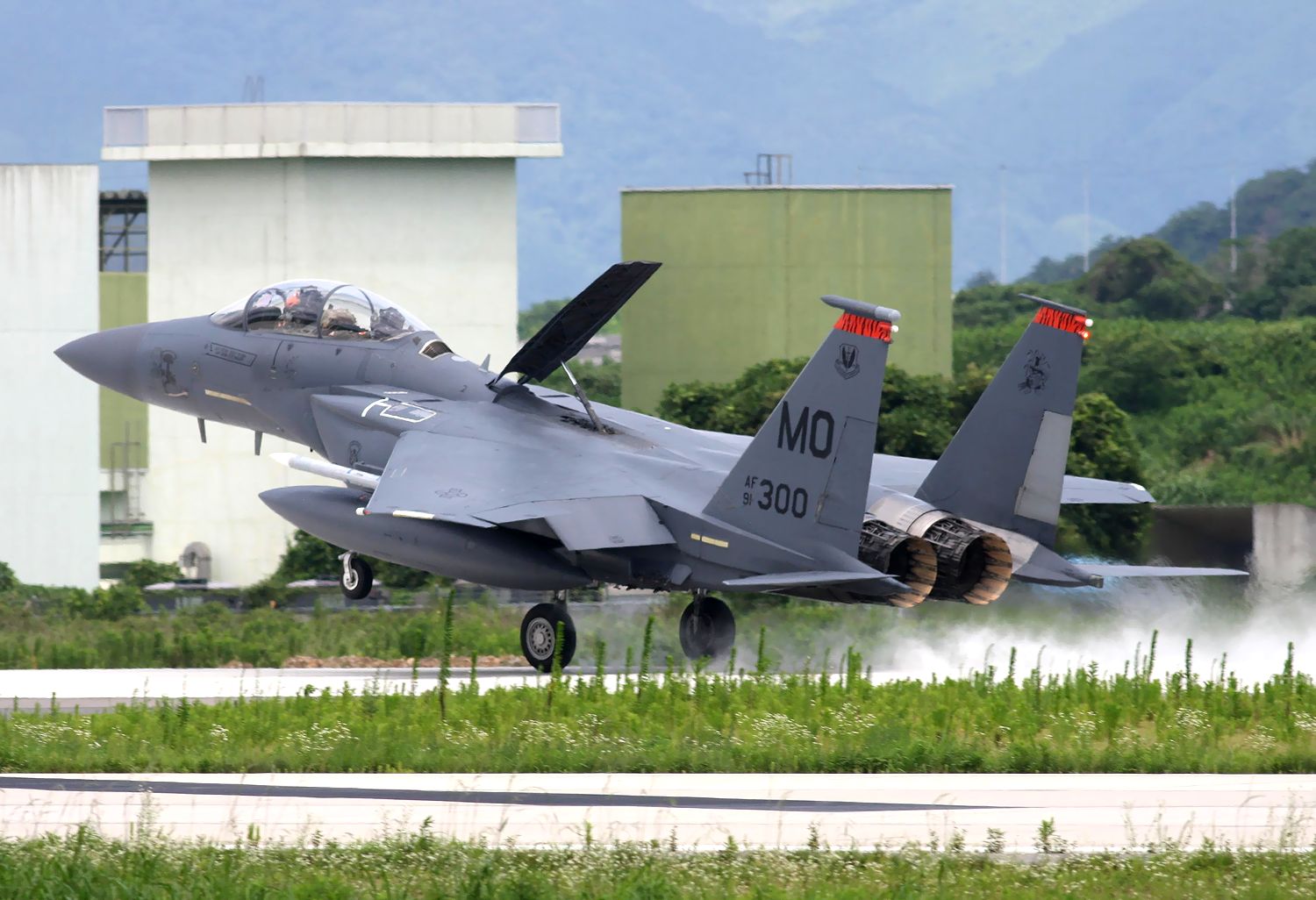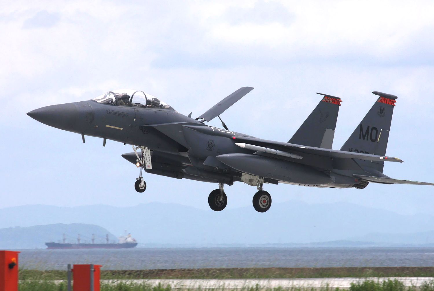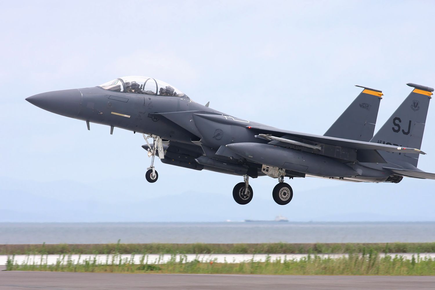これは、2023年7月13日(木)に、築城基地の堤防ポイントにて撮影した、米空軍F-15Eの着陸です。