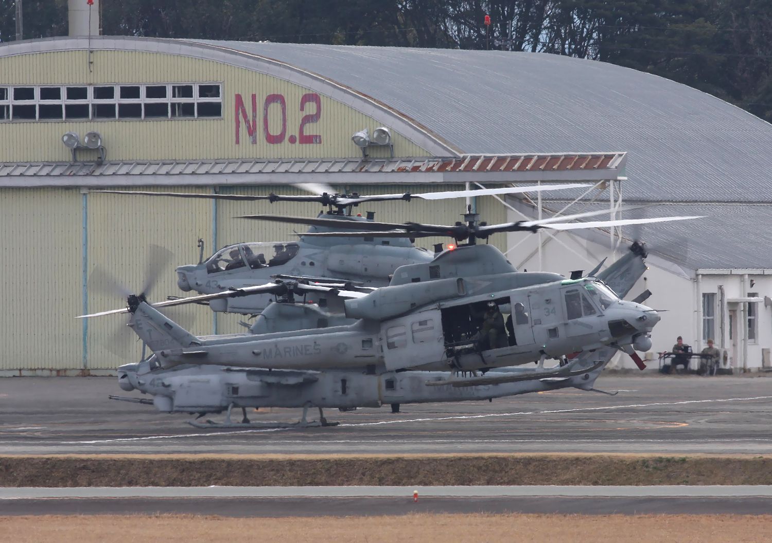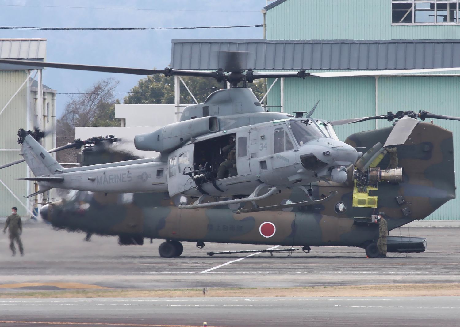 熊本空港に隣接する陸上自衛隊高遊原駐屯地には、米海兵隊の UH-1Yヴェノム3機 と AH-1Z