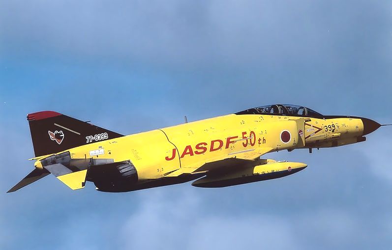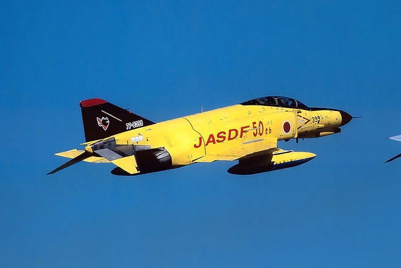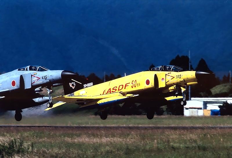 これは、2004年10月6日に新田原基地で撮影した航空自衛隊創設50周年記念塗装の301SQのF4EJ改-399号機の編隊離陸です。