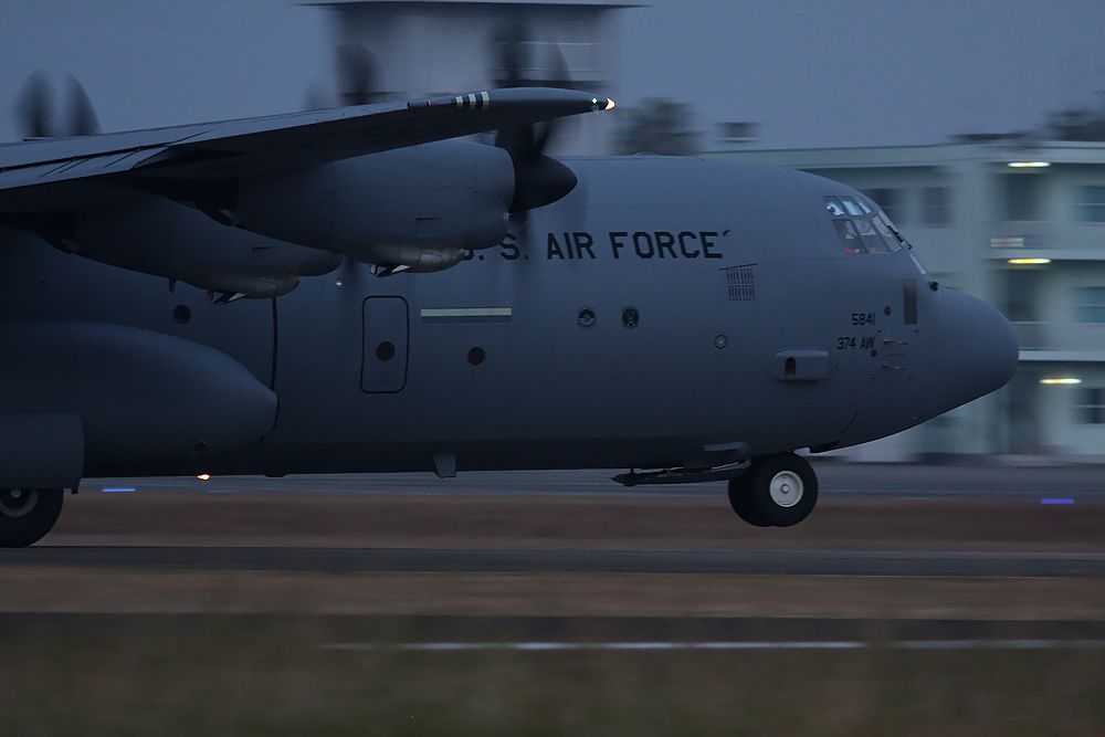 もうすぐ陽が沈むころに、ようやく横田基地のC130が飛び立ちました。