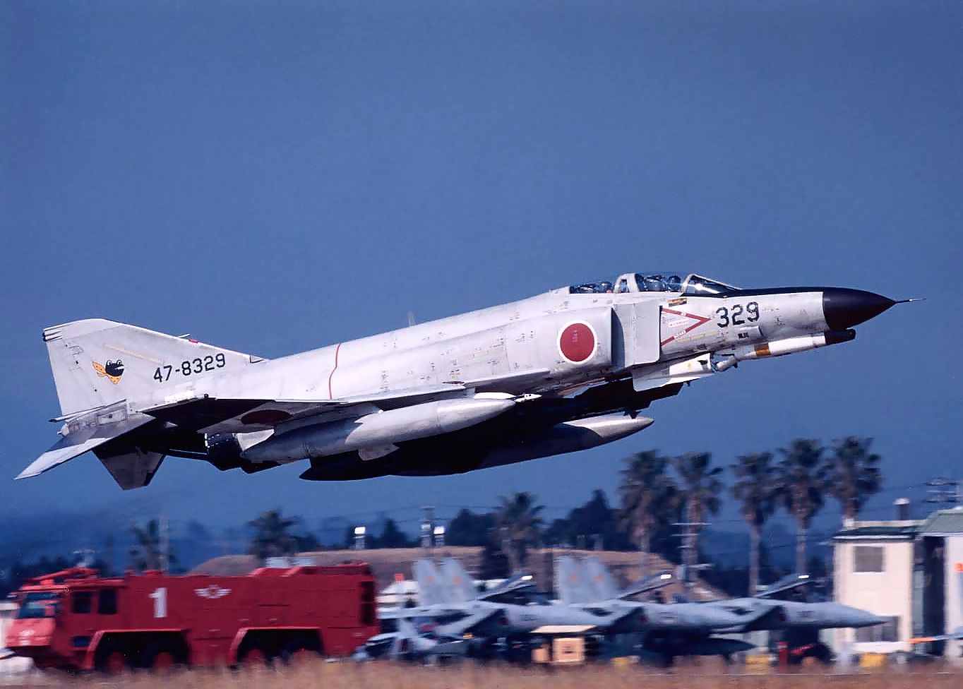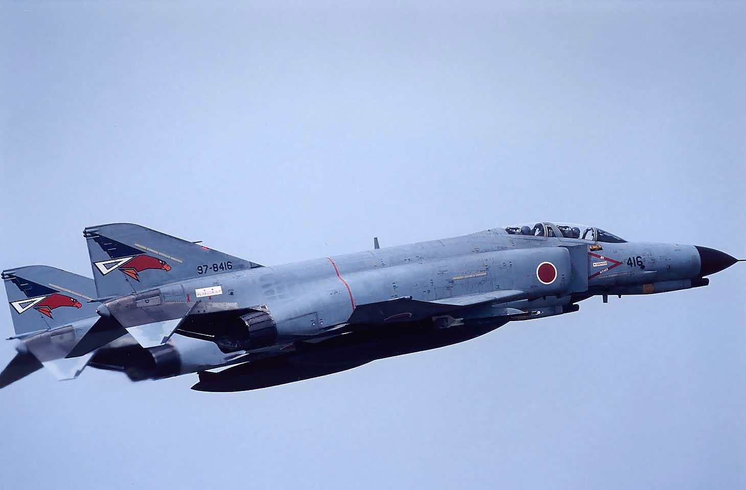 | これは1997.09.10に新田原基地で撮影した301SQ所属F4EJ改の402号機と僚機の編隊離陸です。 |
