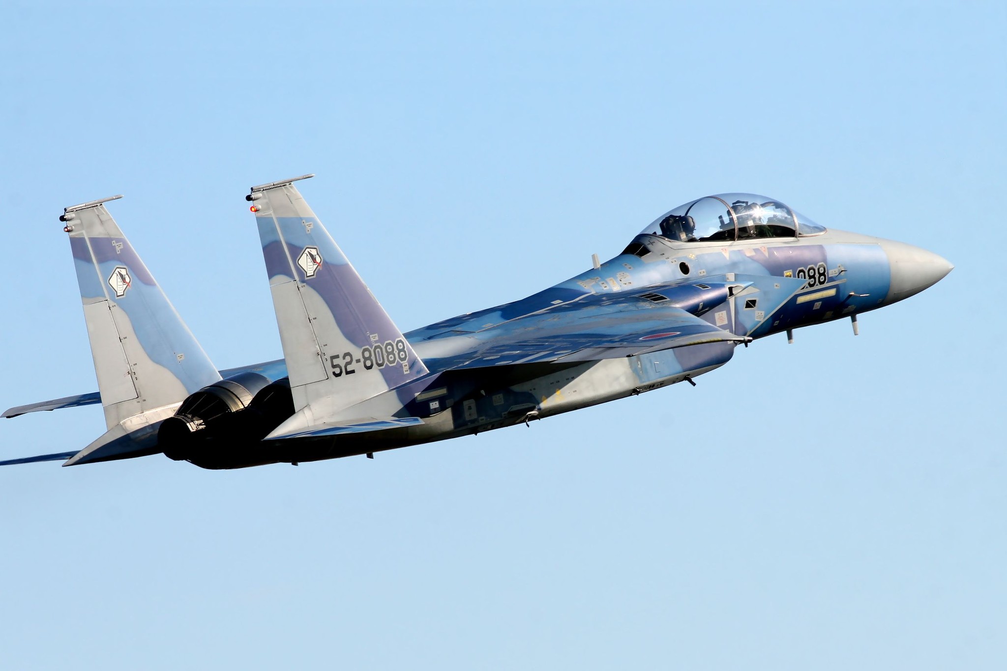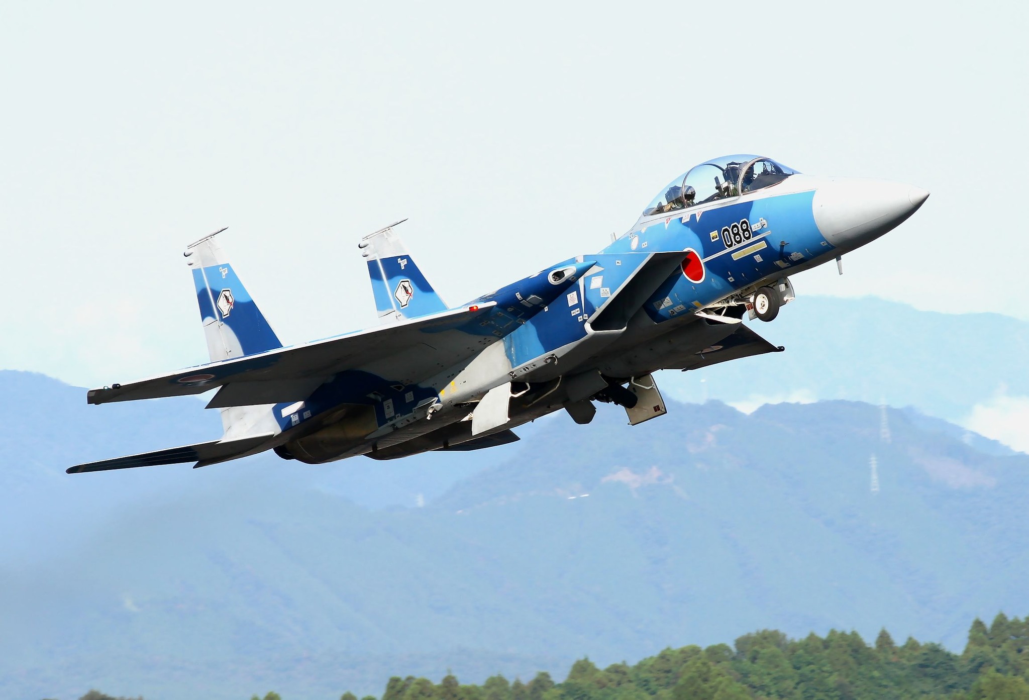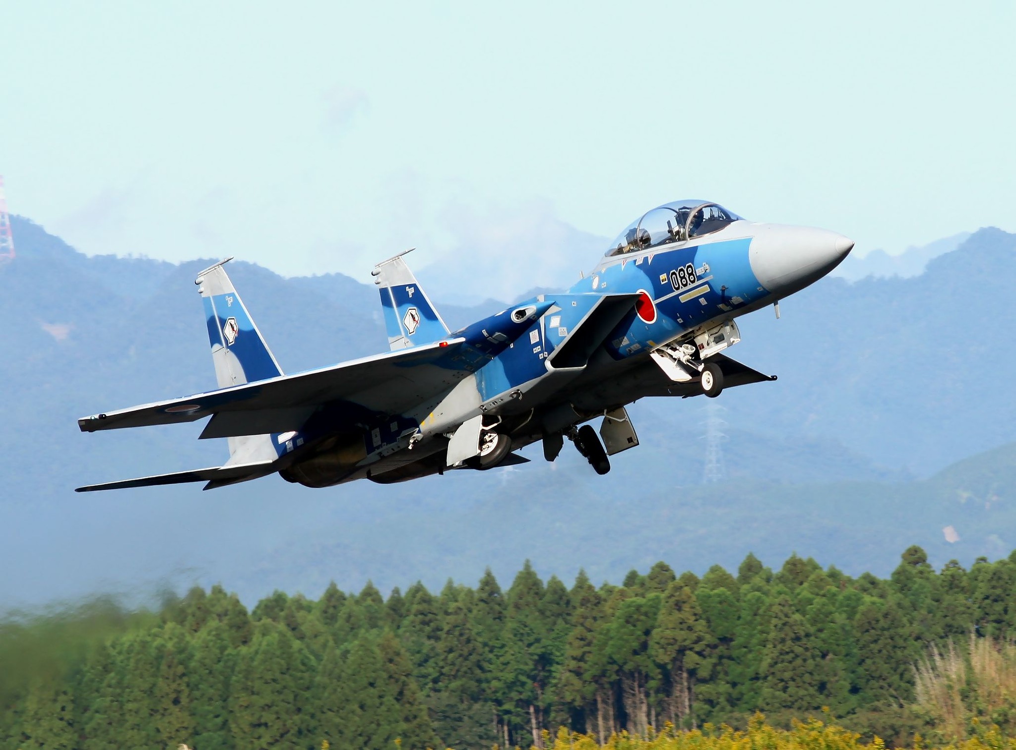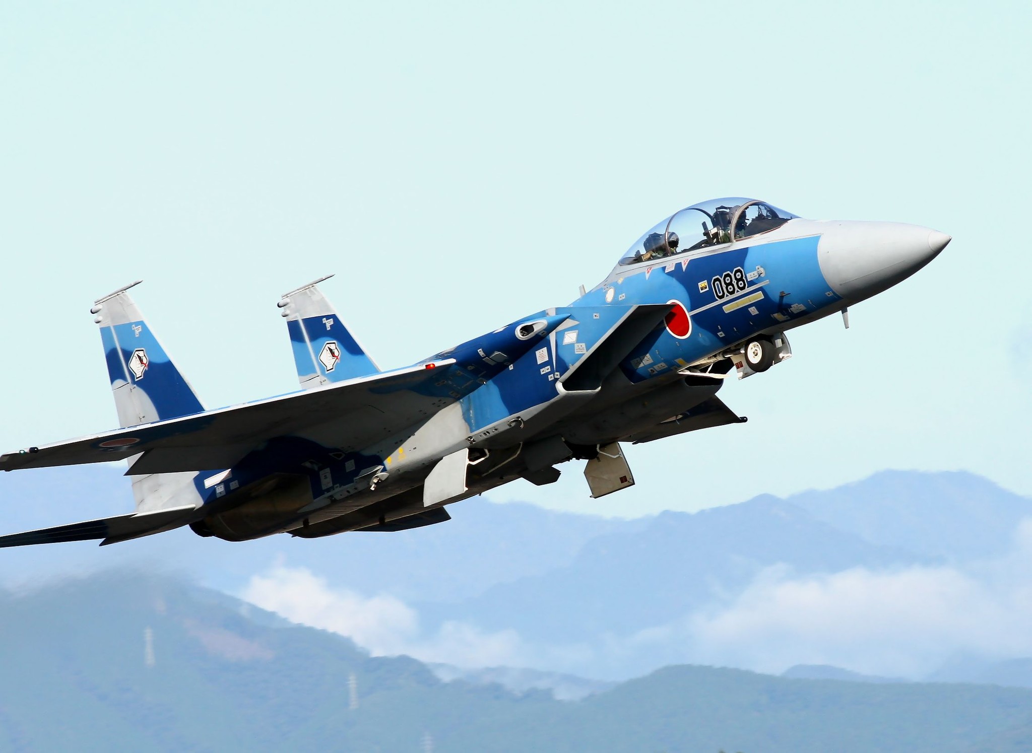 那覇基地の302飛行隊から異動してきたばかりの機体のようで、垂直尾翼には大きなオジロワシマークを消した跡、機首には戦技競技会参加用のシャークマウスを消した跡がまだ残っていました。