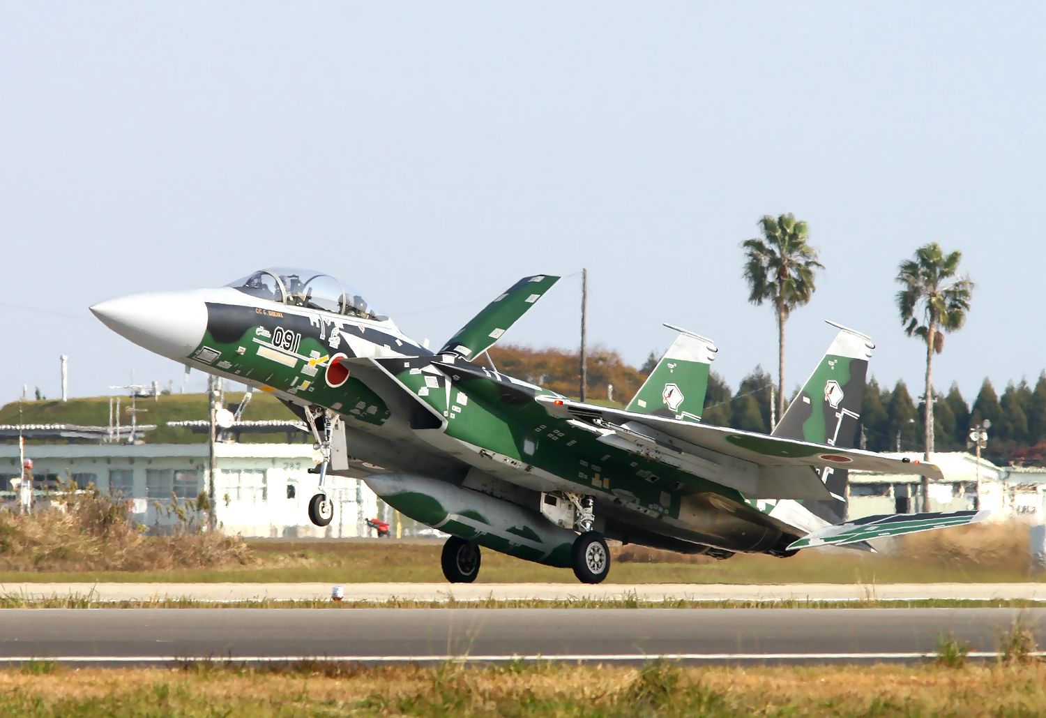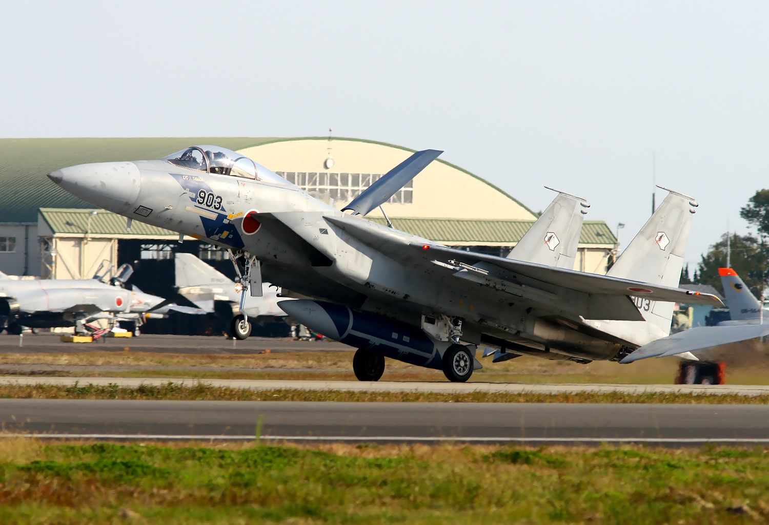 | これは、2013年11月27日(水)に新田原基地で撮影した23SQのF15DJ/Jの編隊離陸です。 |
