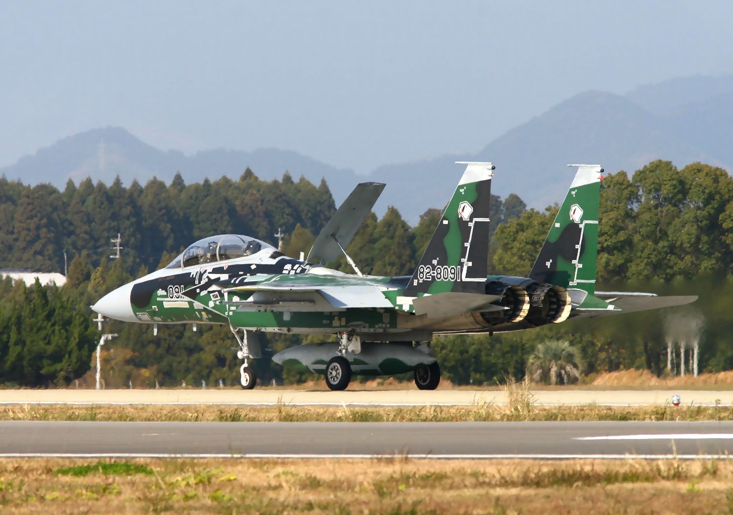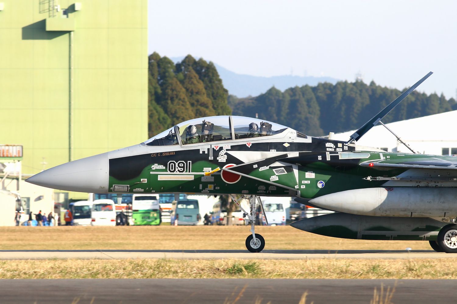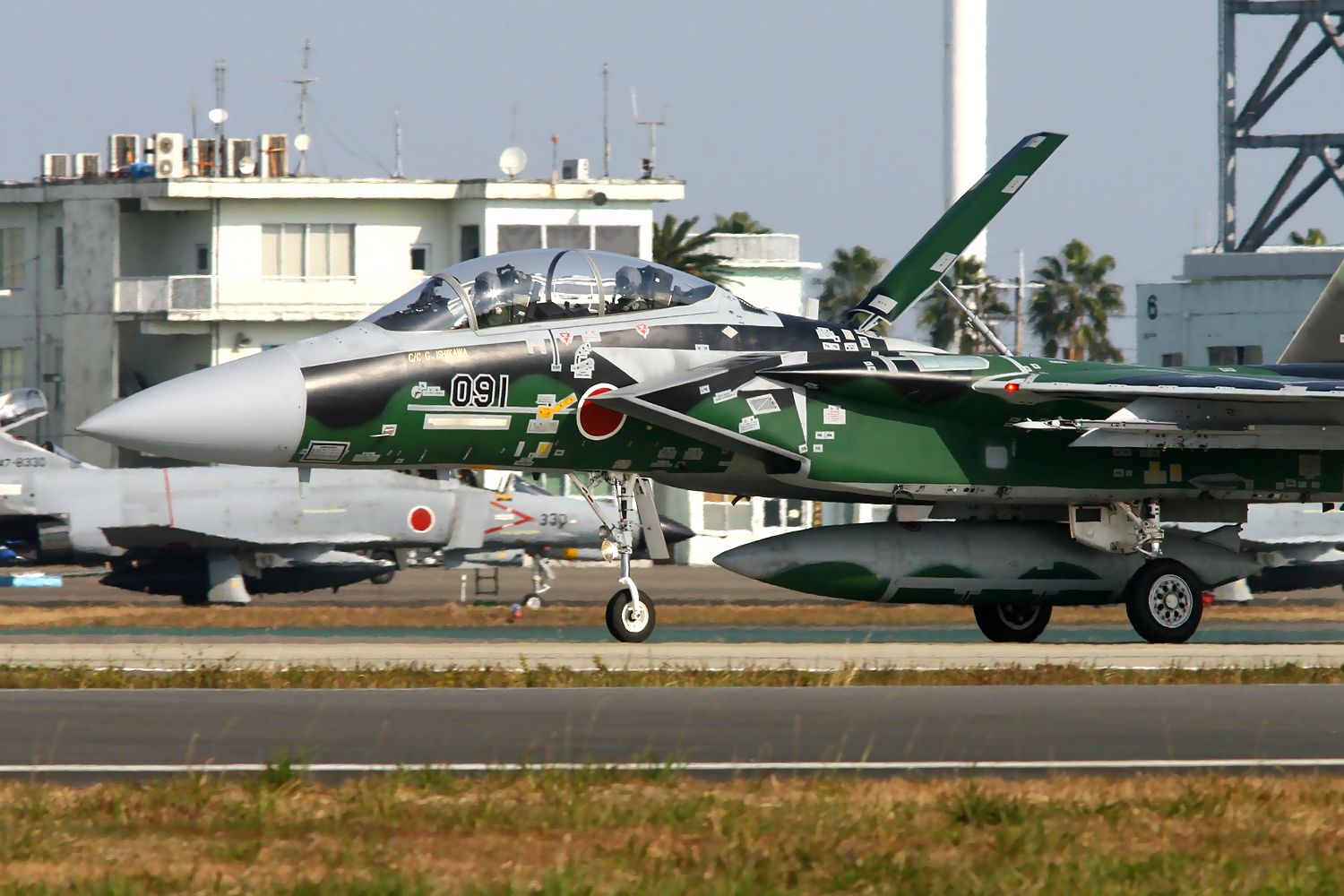 | これは、2014年12月7日(日)の新田原基地航空祭で撮影した、早朝のデモフライトを終えたAGR-091のRWタキシーです。 |