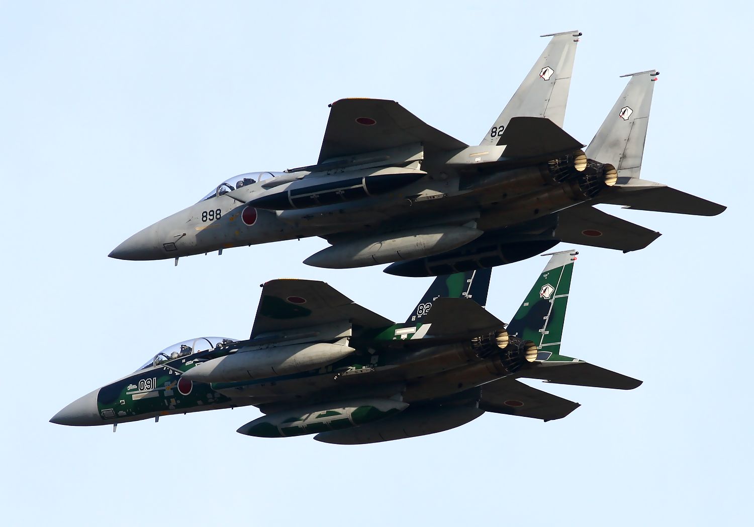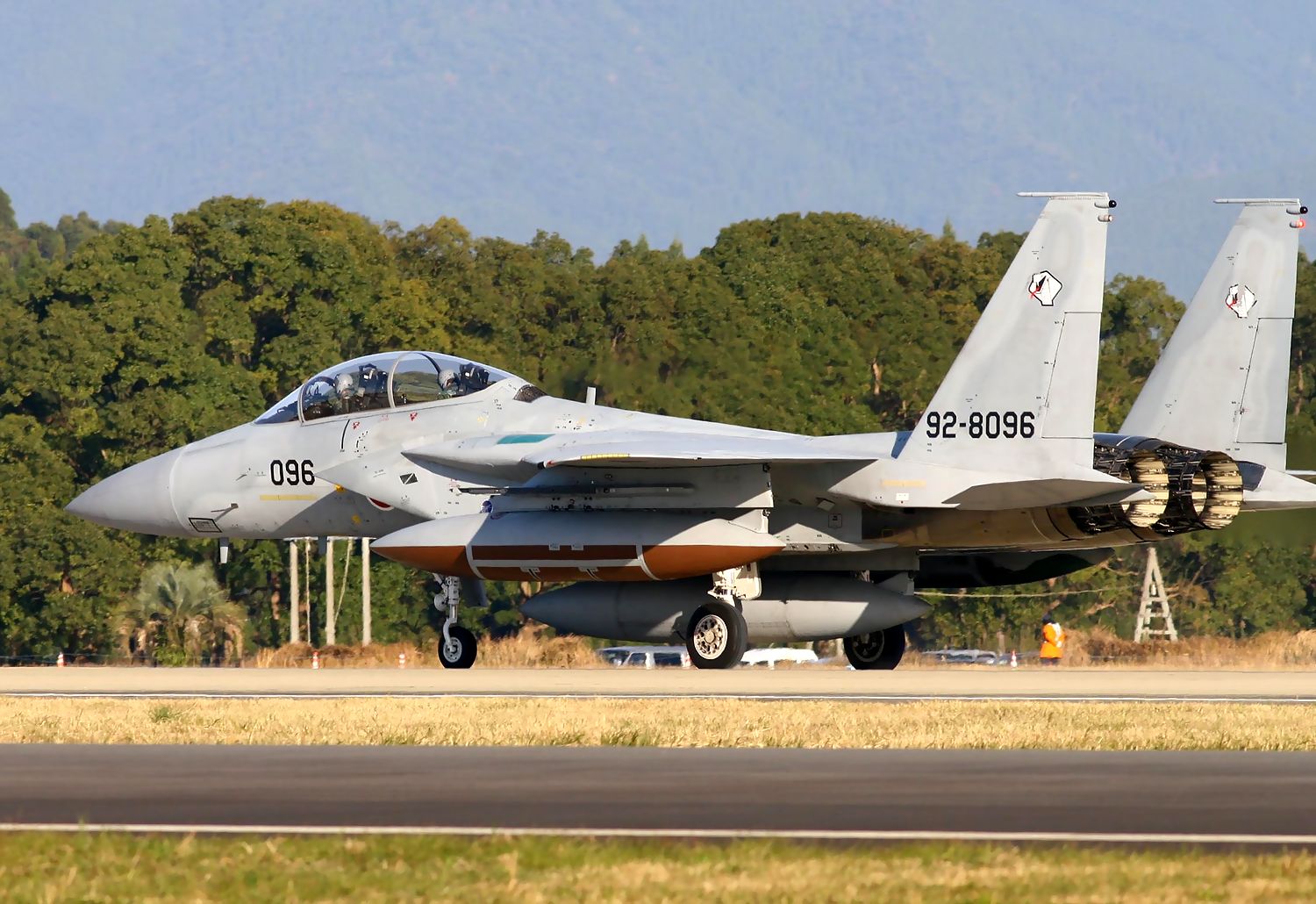 これは、2014年12月7日(日)の新田原基地航空祭で撮影した、早朝のデモフライトを終えたAGR-898号機と096号機のRWタキシーです。