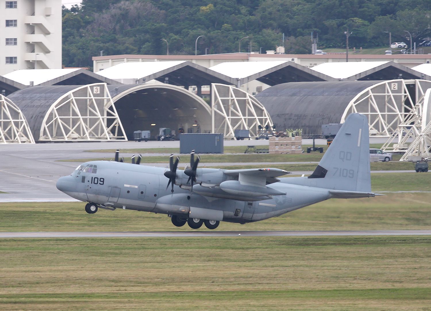 普天間基地所属 米海兵隊 KC-130J QD7109です。 |