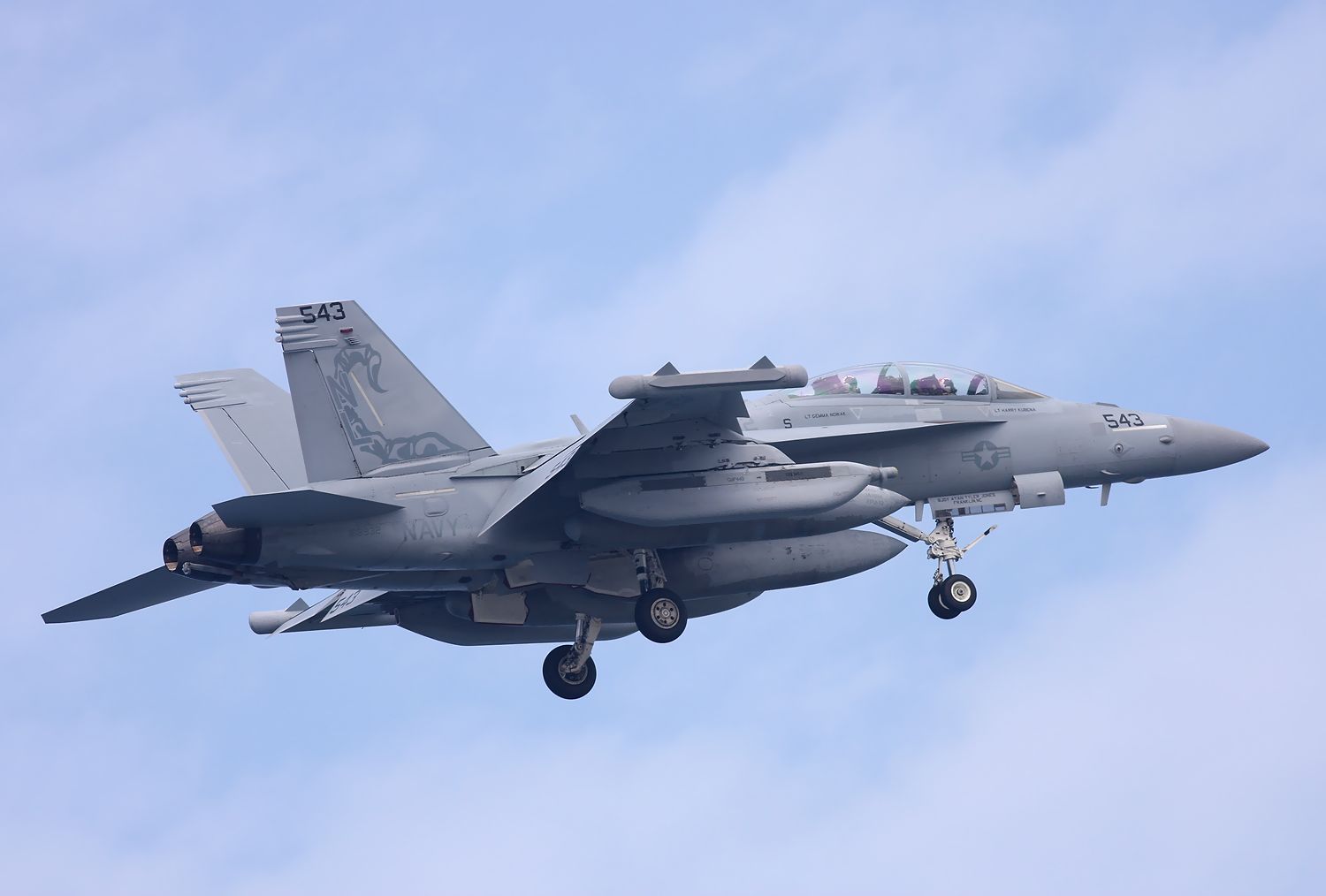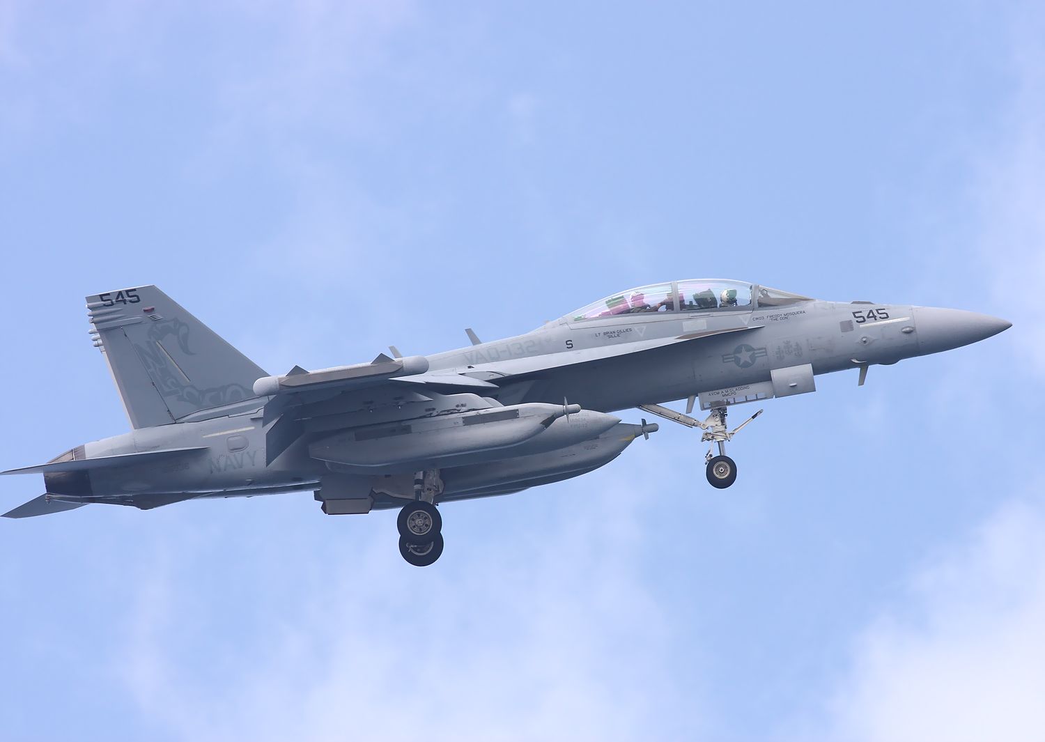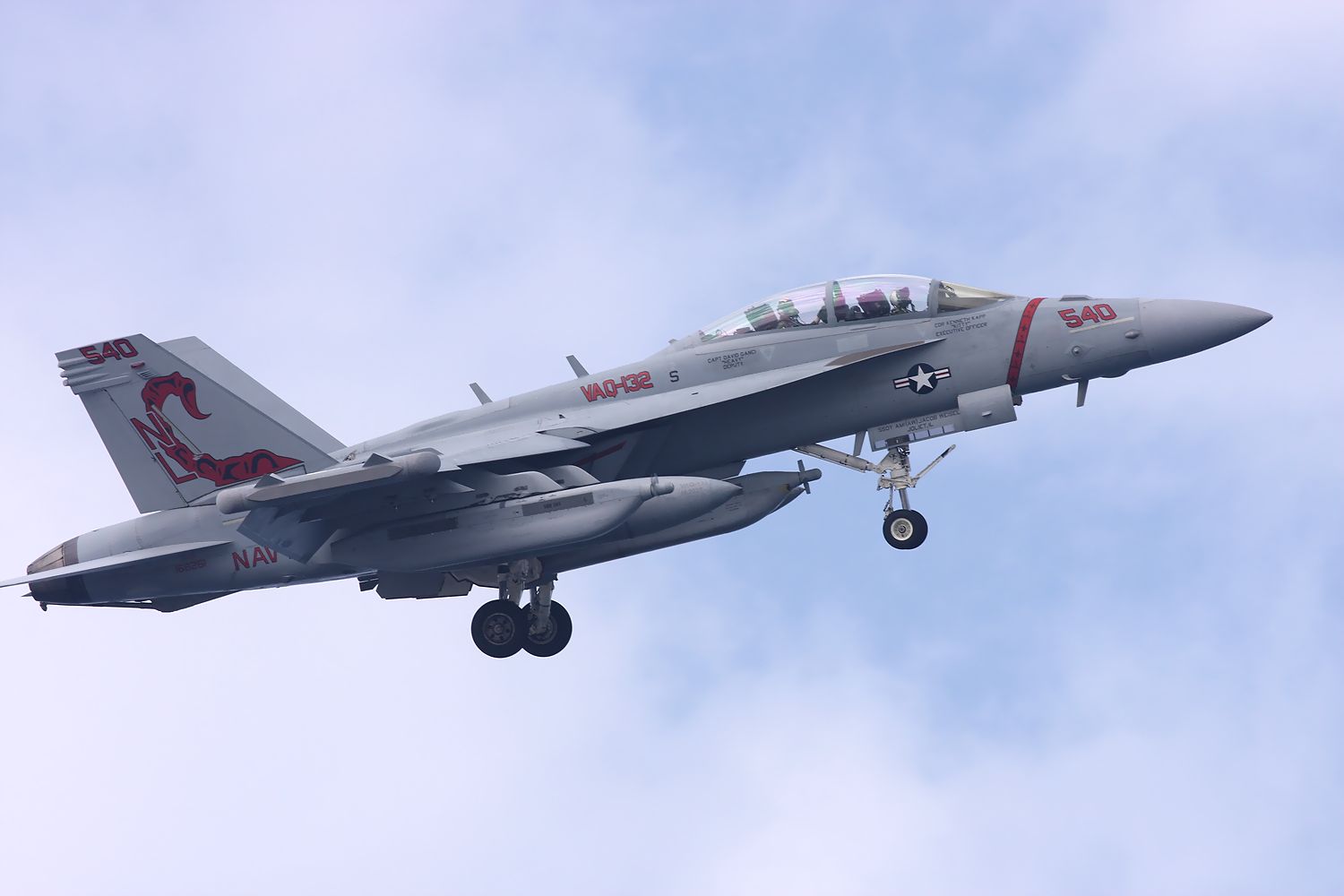 訓練を終えてランディングする アメリカ海軍のVAQ-132”Scopions”の