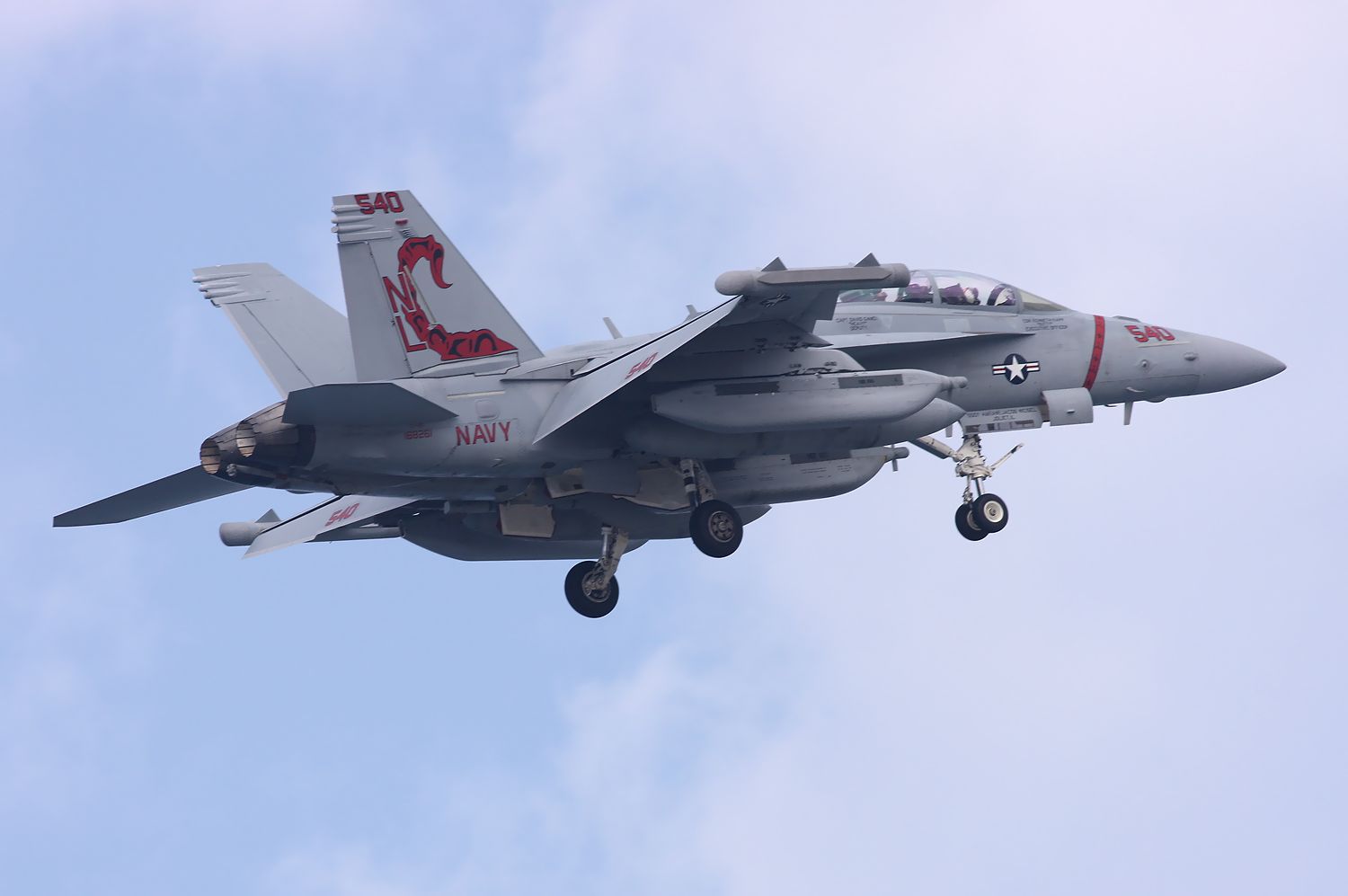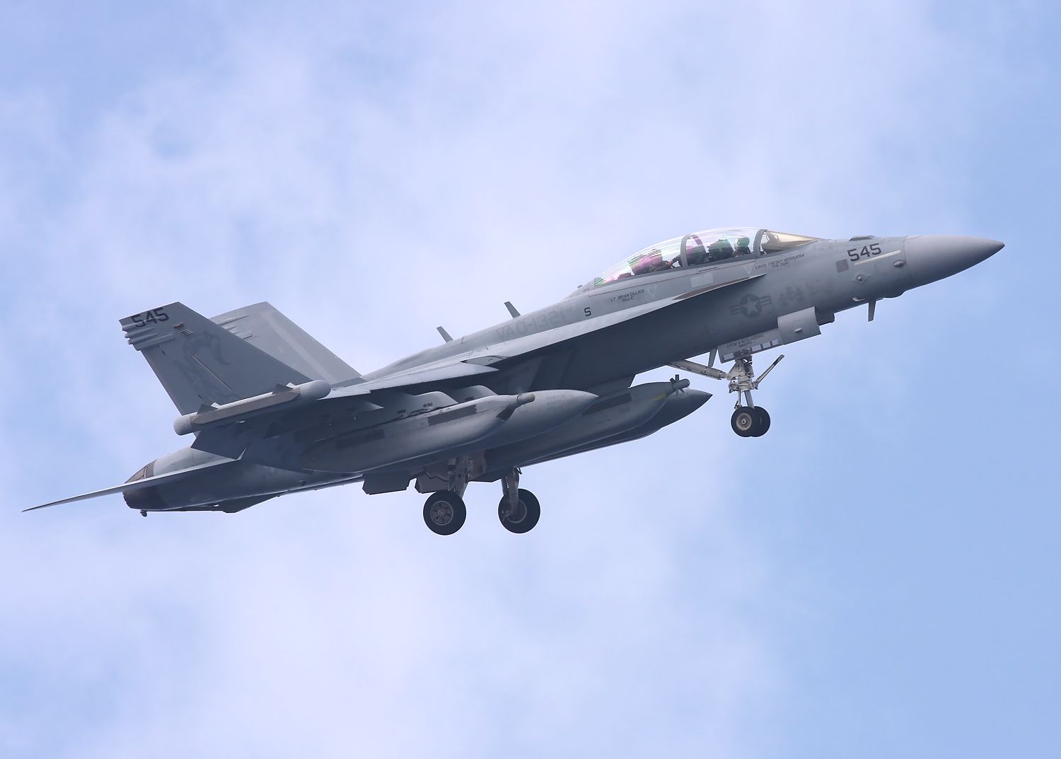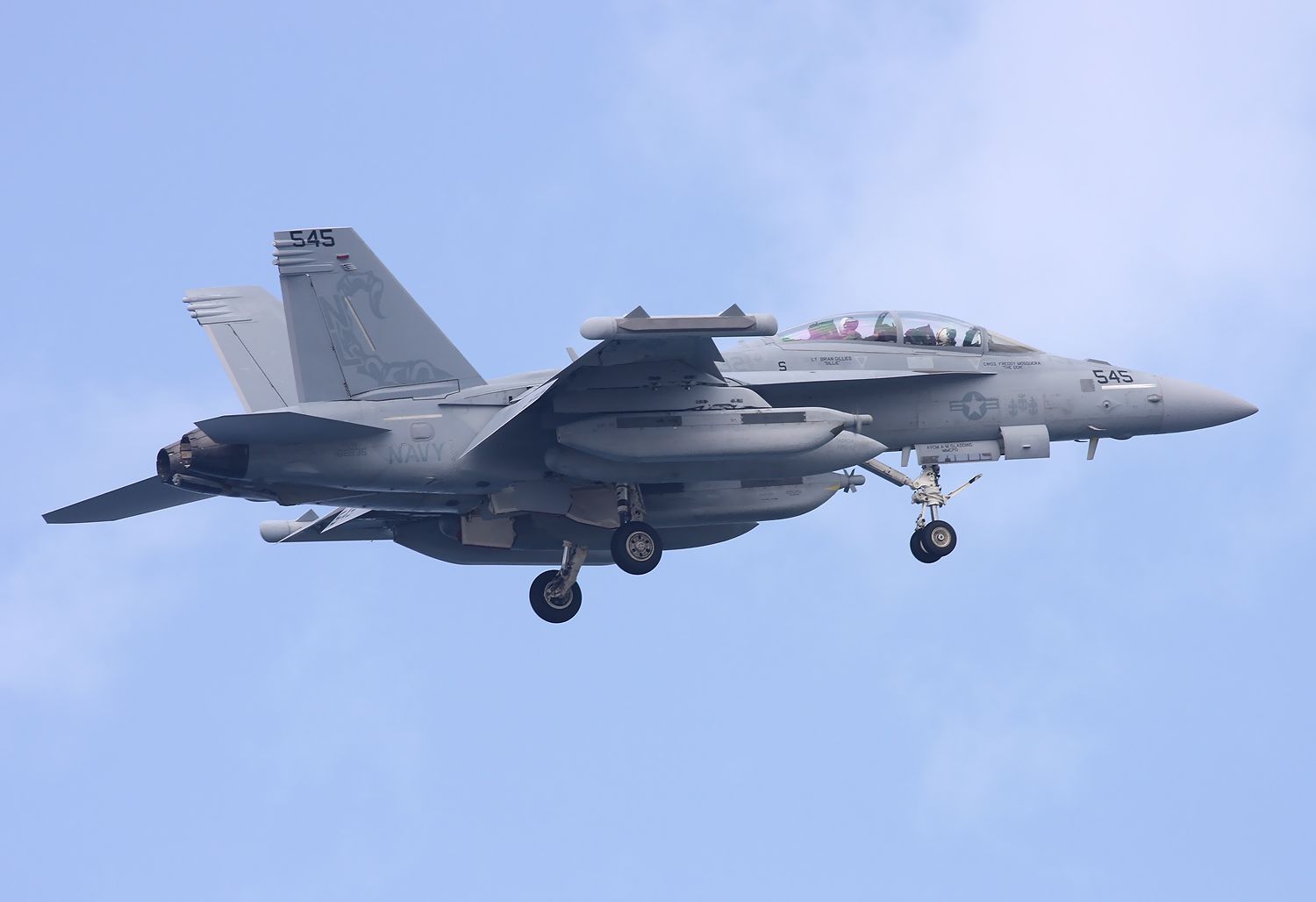 訓練を終えてランディングする アメリカ海軍のVAQ-132”Scopions”の