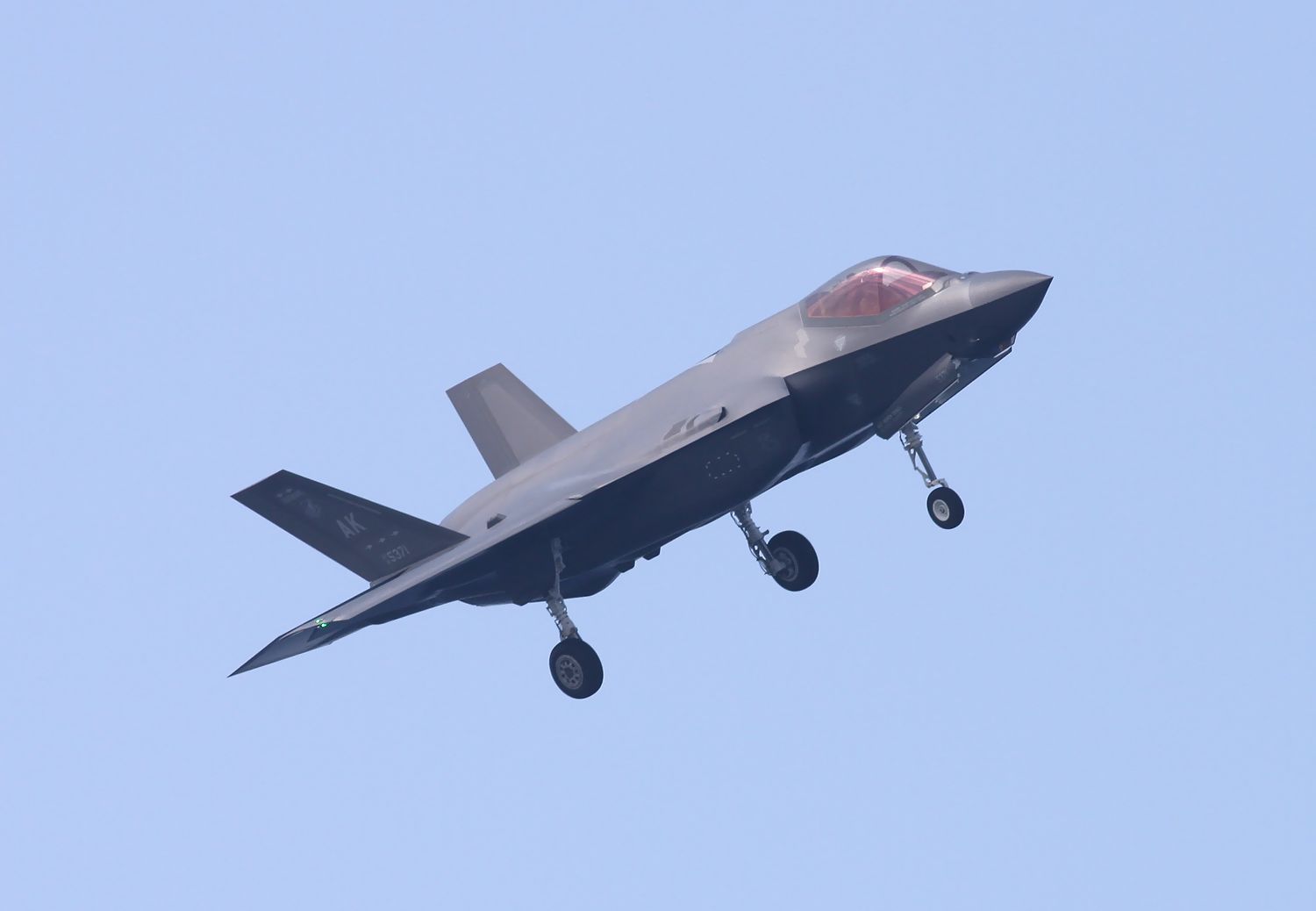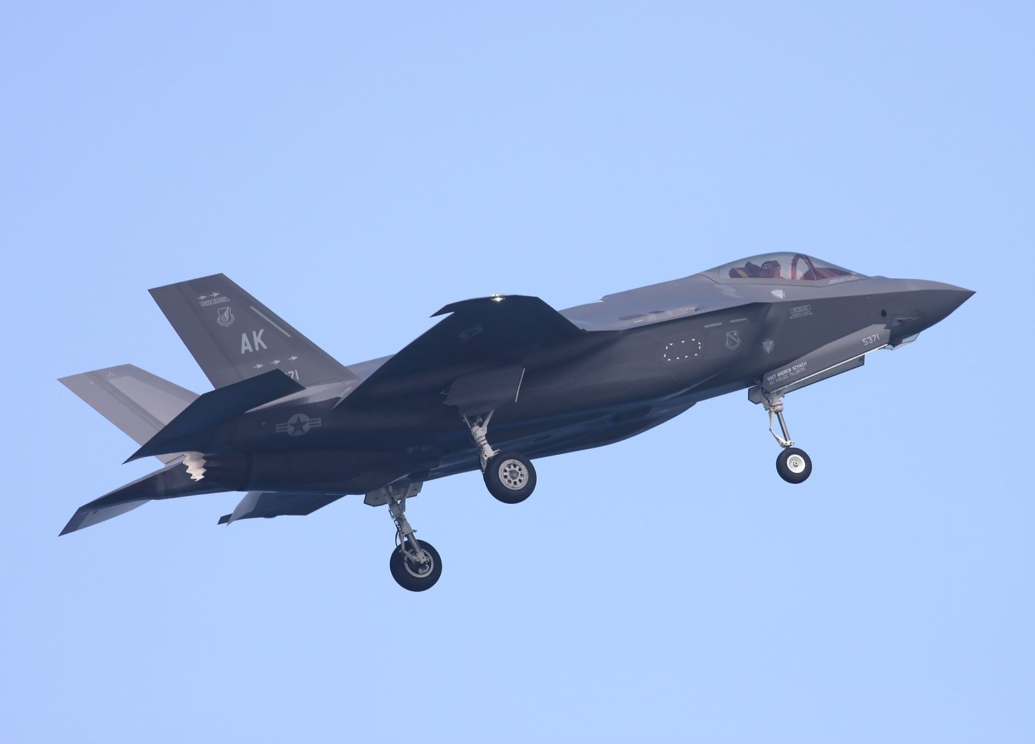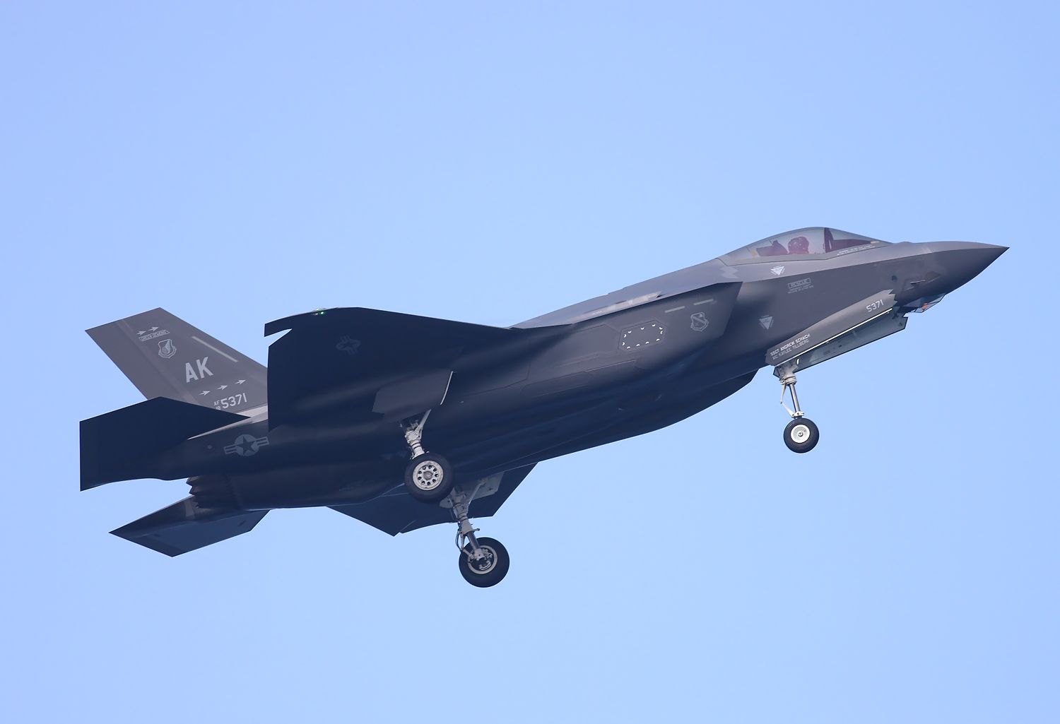 アメリカ空軍アラスカ州 Eielson AFBの354FWから 嘉手納基地に派遣されているF-35A (5371)です。