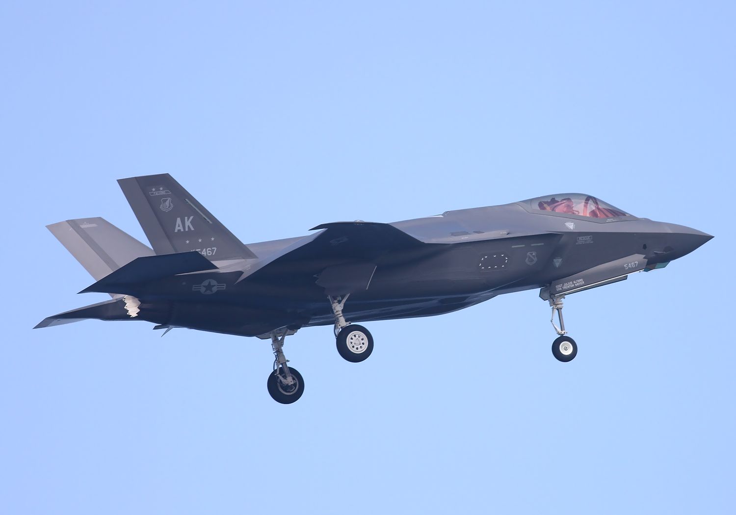 アメリカ空軍アラスカ州 Eielson AFBの354FWから 嘉手納基地に派遣されているF-35A (5467)です。