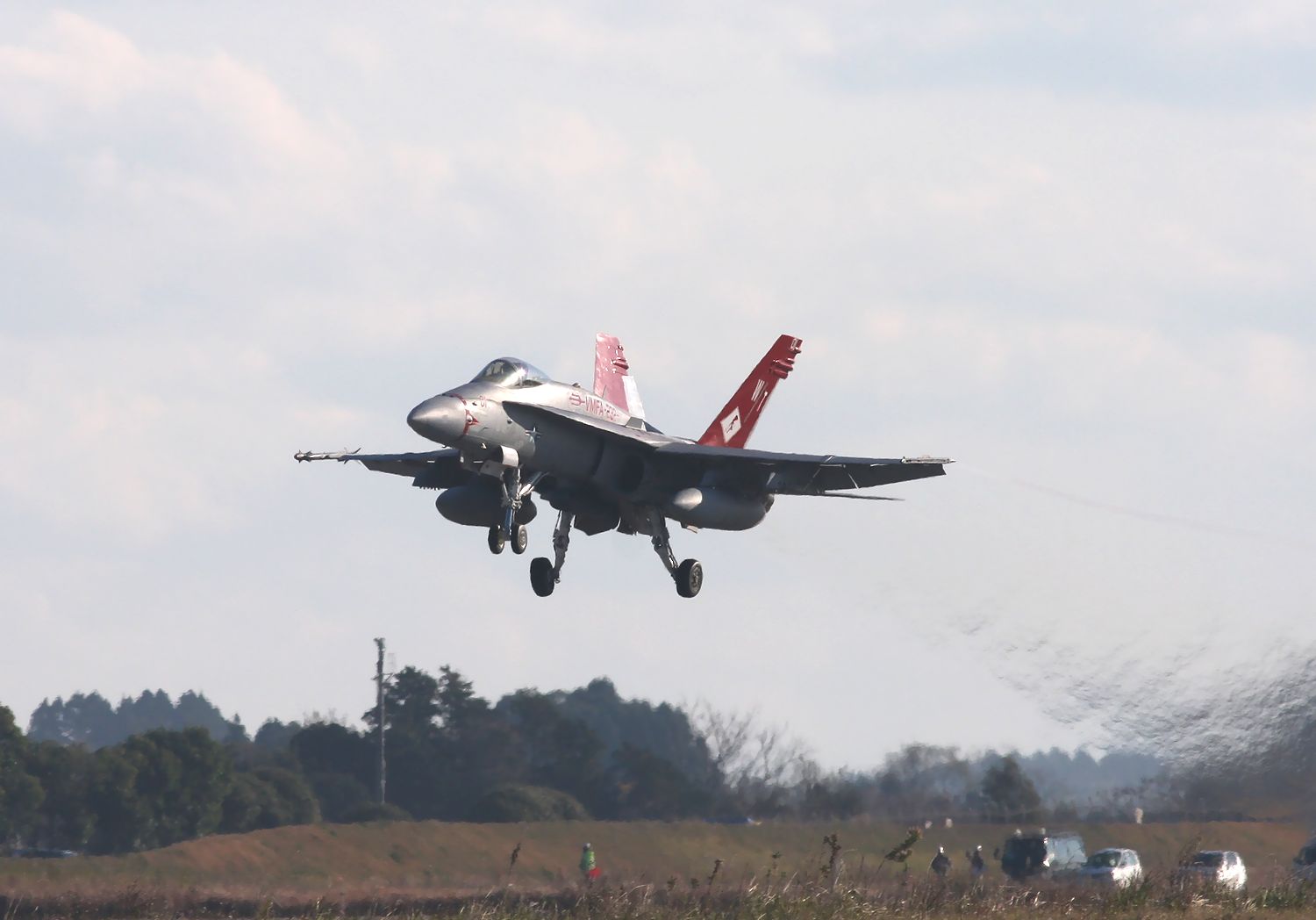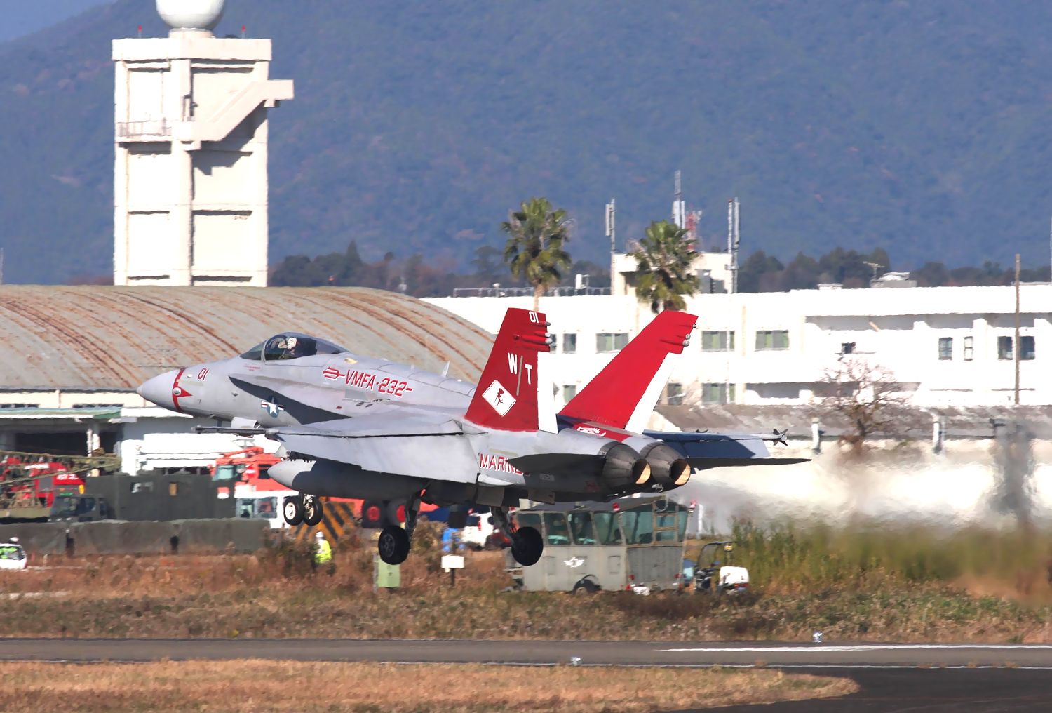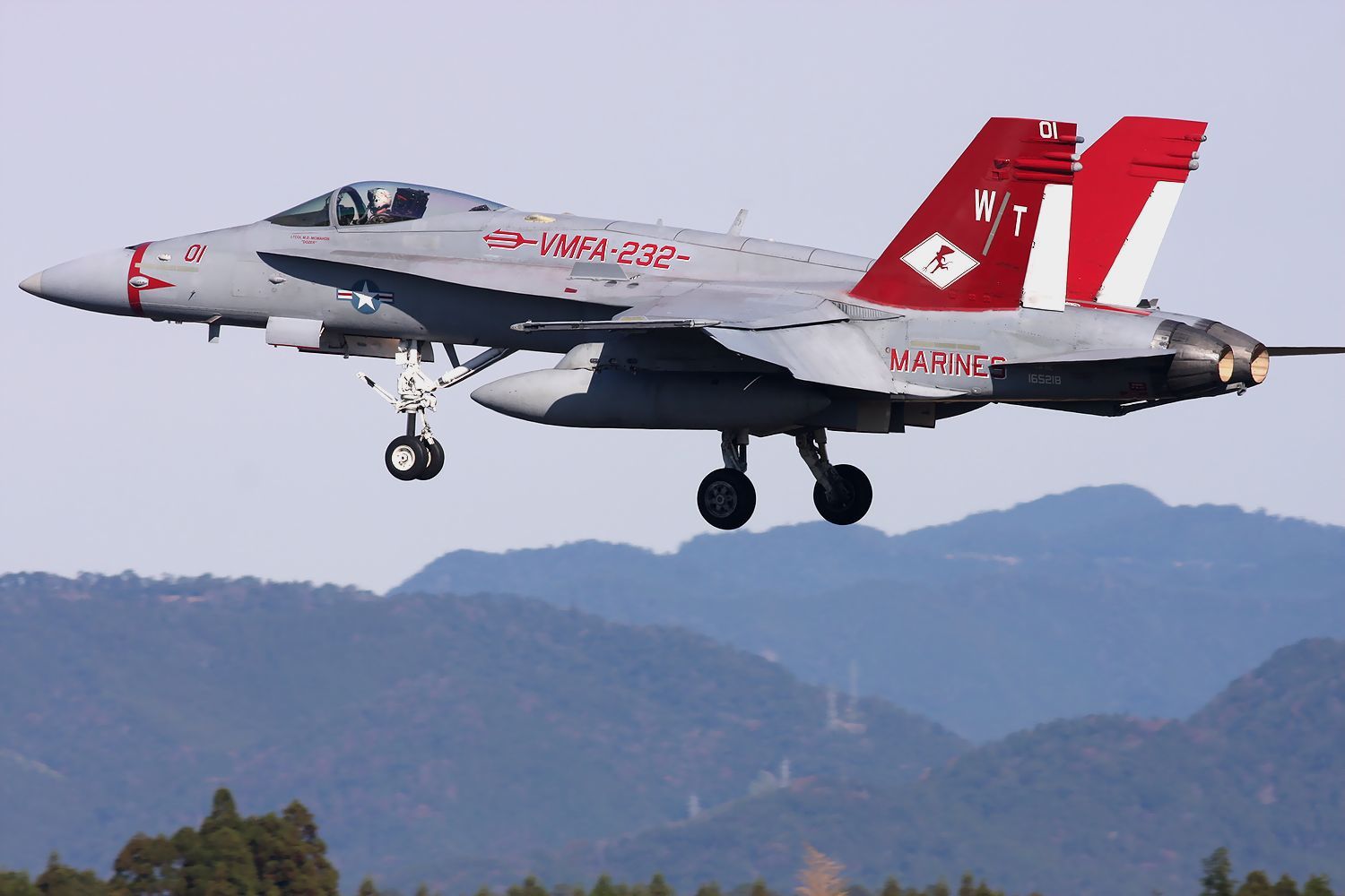 2023年12月18日(月)に新田原基地で撮影したVMFA232-FA18C(No165218)のRW28からのランディングです。