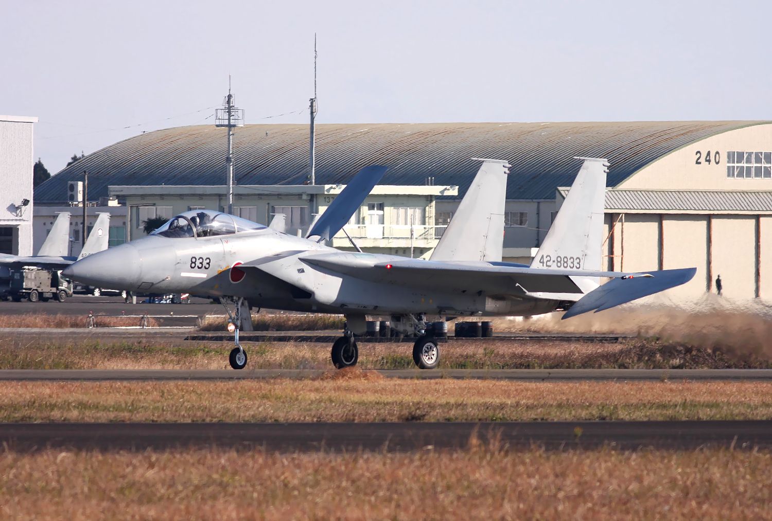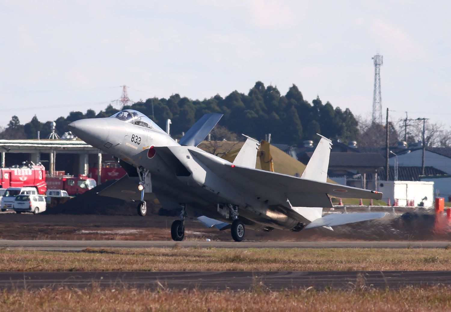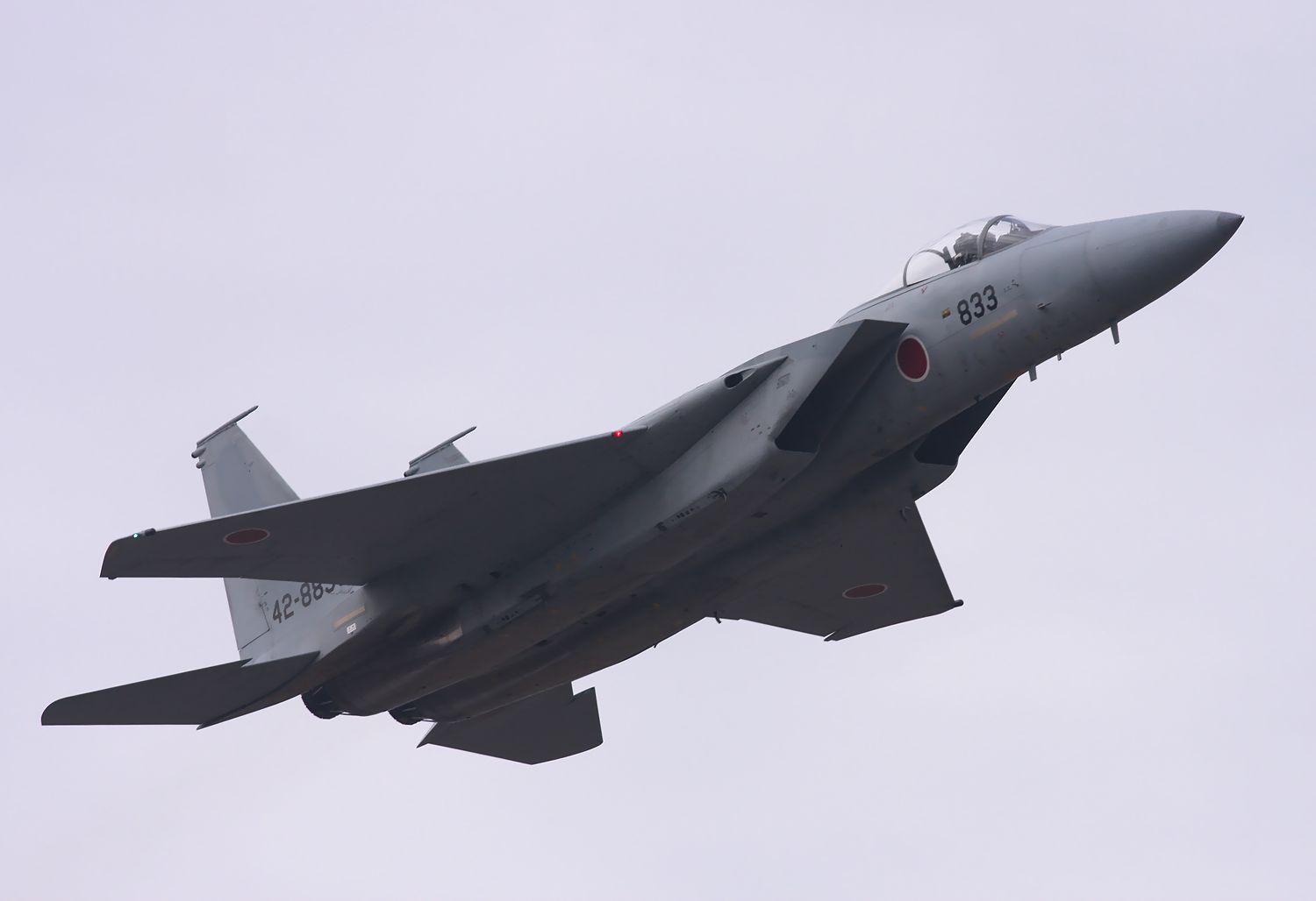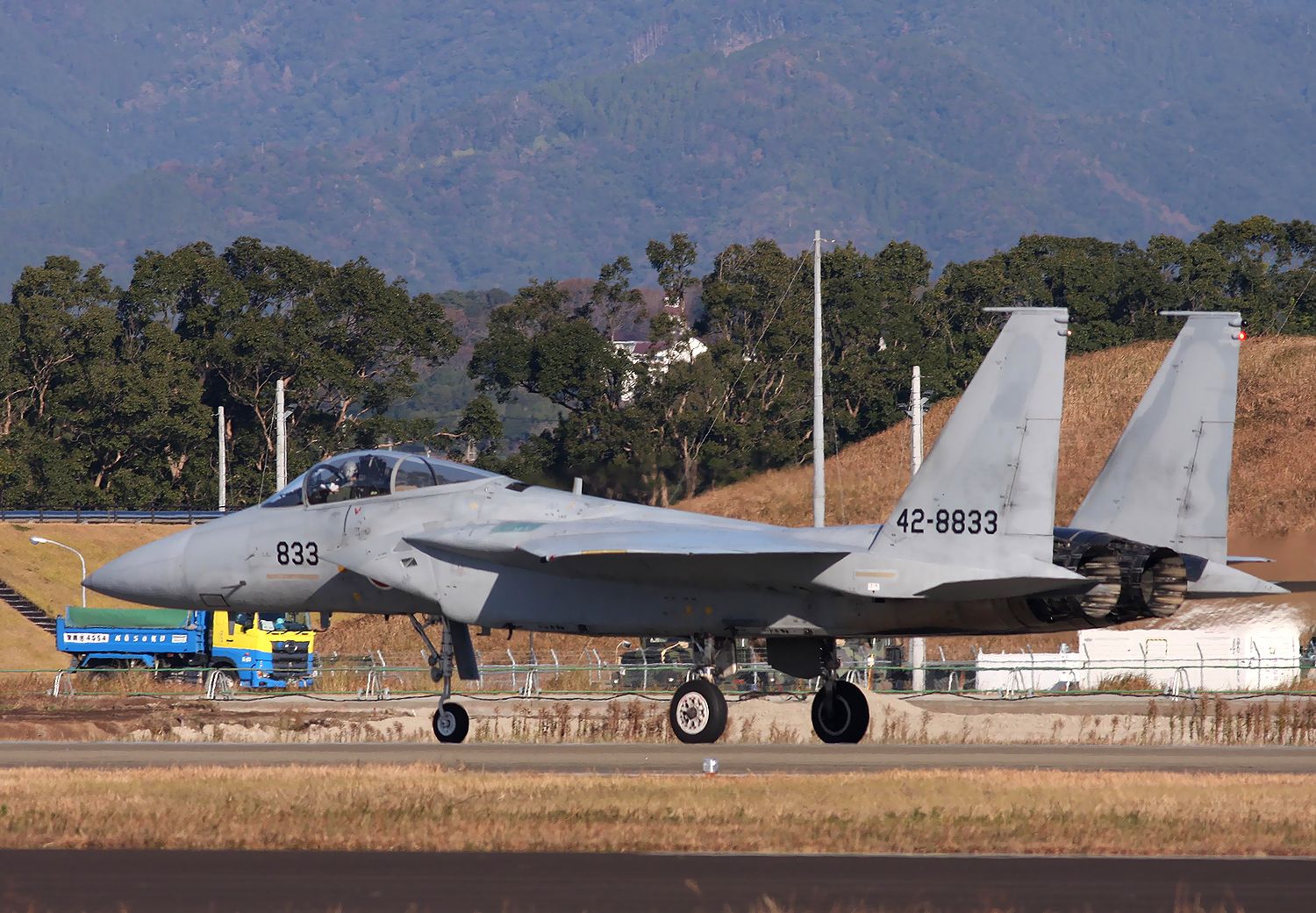 2023年12月18日(月)の早朝に、新田原基地で撮影したセンタータンク無しのF15J-833号機です。