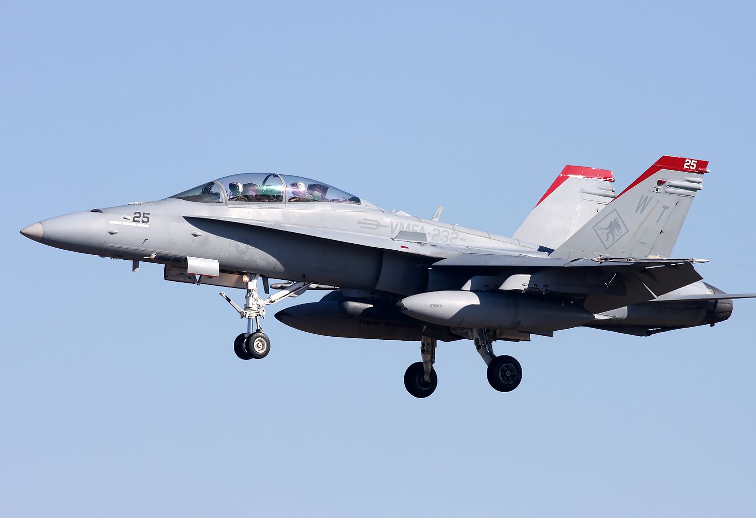 2023年12月18日(月)に新田原基地で撮影したVMFA232-FA18D(No164959)のRW28からのランディングです。