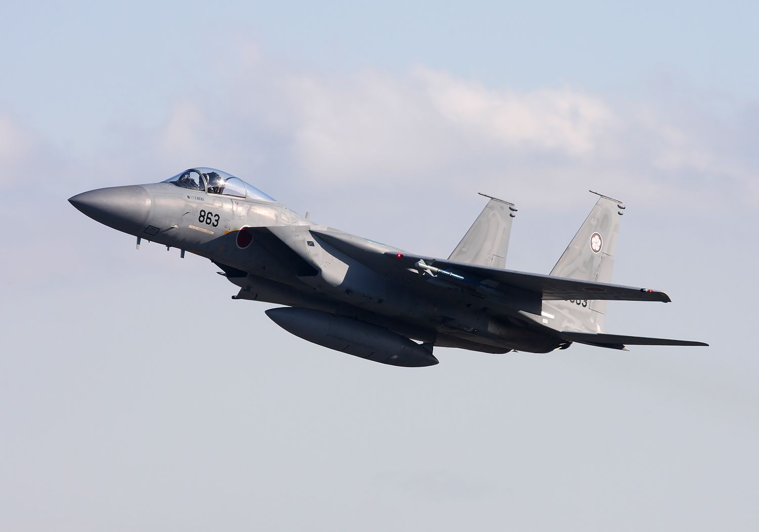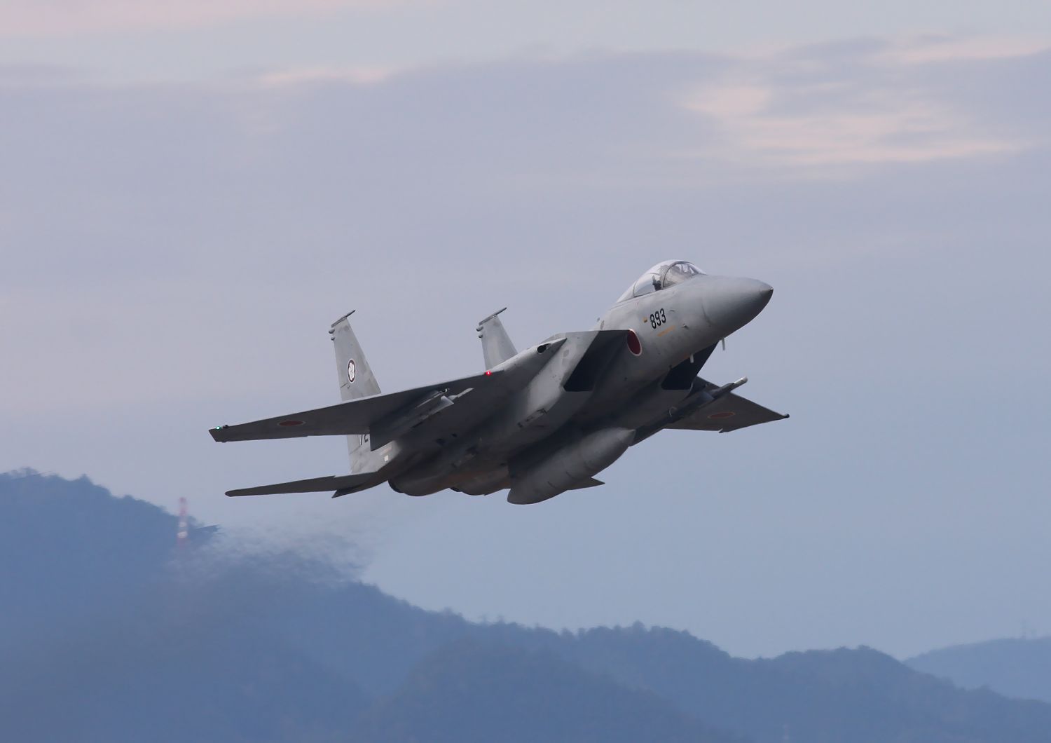 2023年12月18日(月)のPM3:00に 新田原基地で撮影した センタータンク無しのF15J