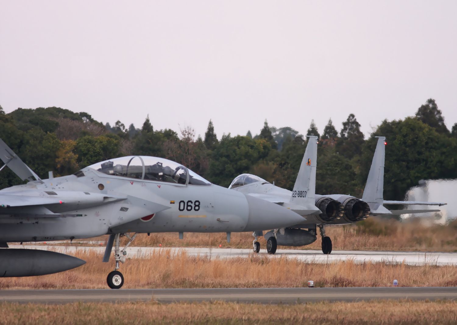 2023年12月18日(月)のPM3:00に 新田原基地で撮影した 23SQ-F15J/DJの着陸後のRWタキシーです。