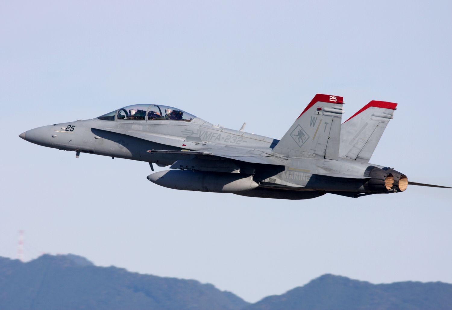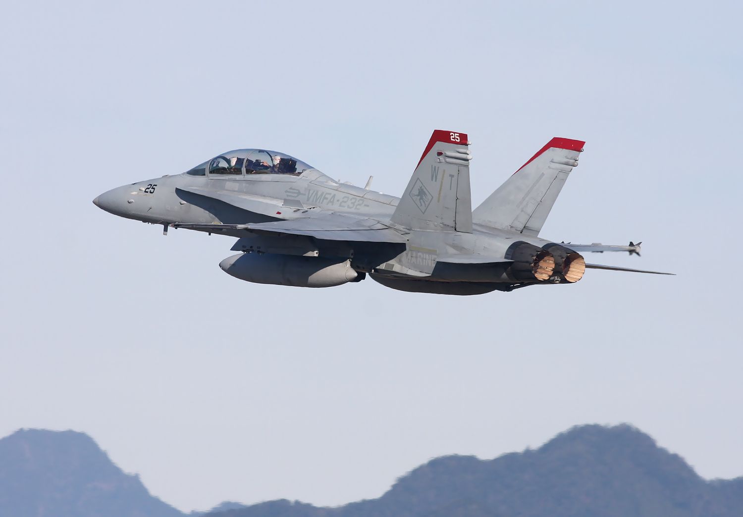 2023年12月18日(月)午後3時ごろに、新田原基地で撮影した この日2回目の日米共同訓練のために離陸する VMFA232"Red