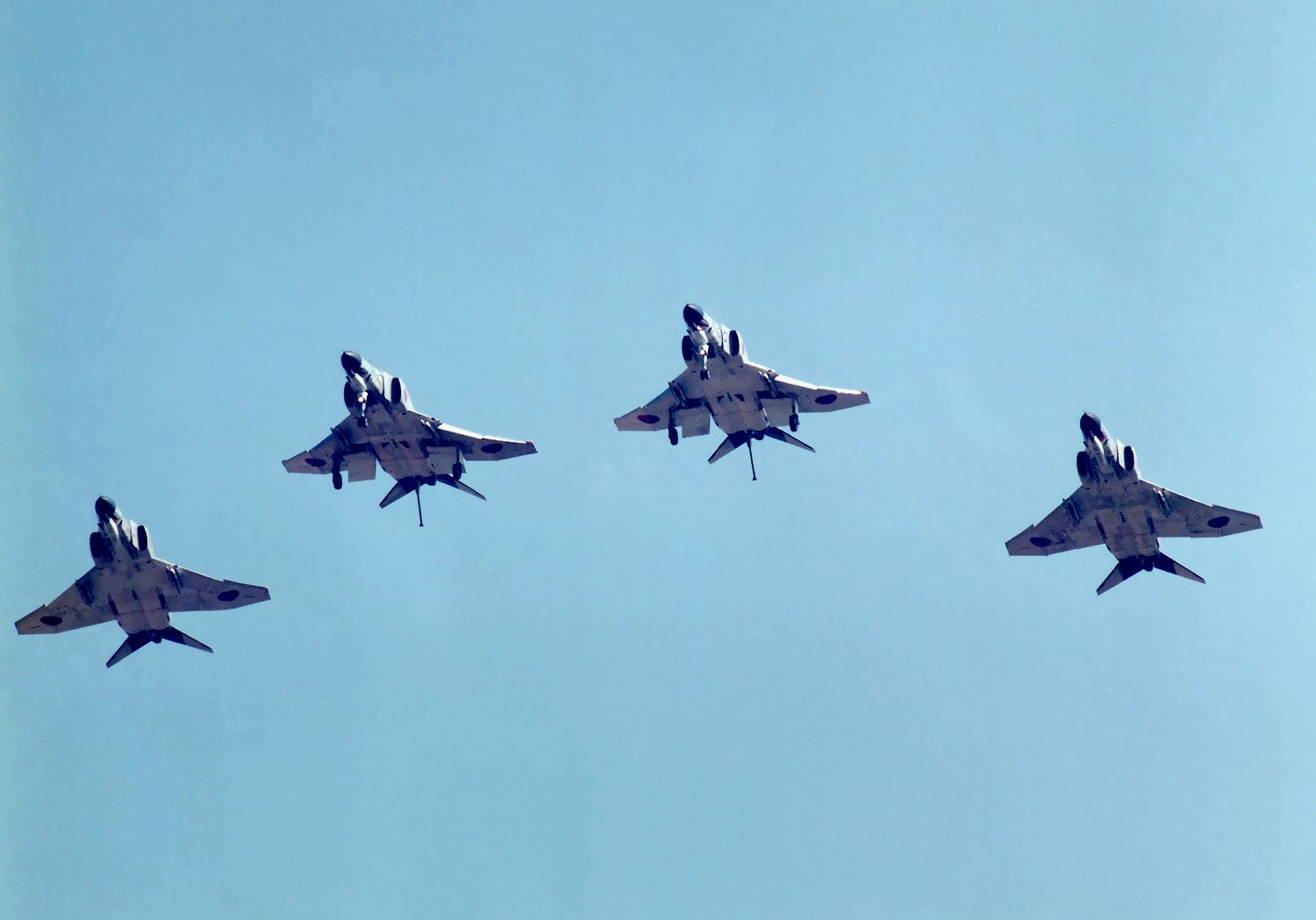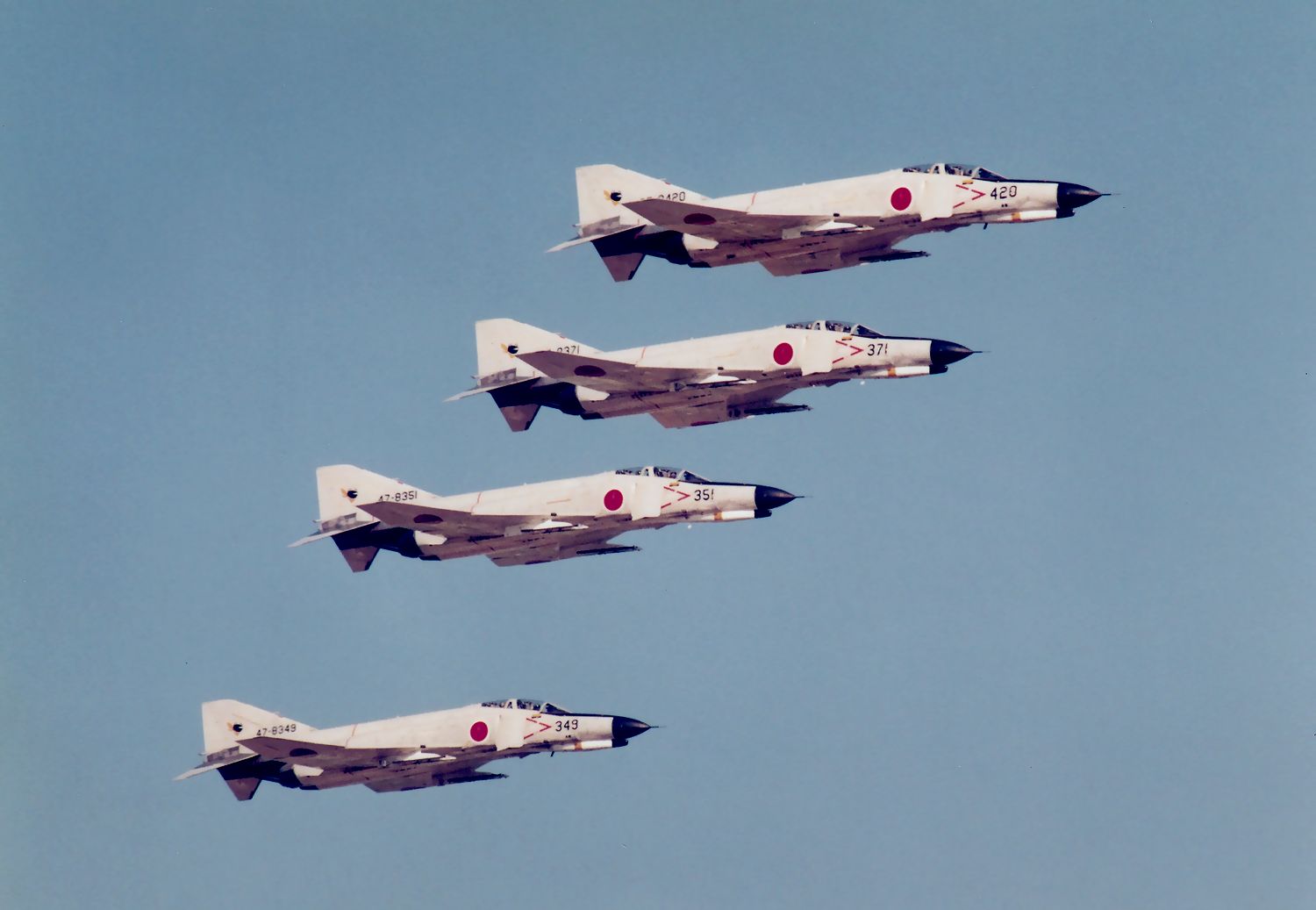 フォーメーションでデモフライトを行う301SQのF4EJです。