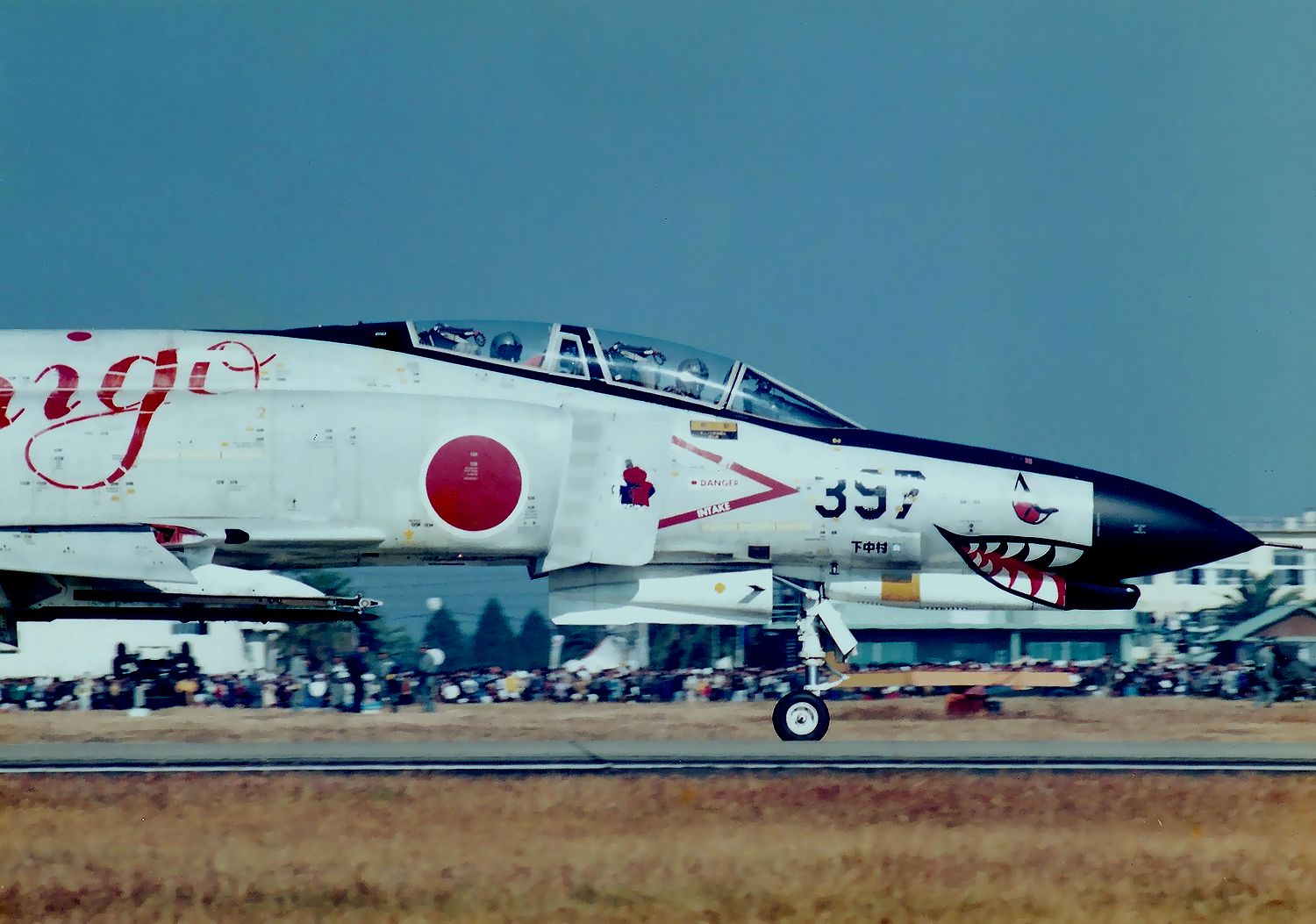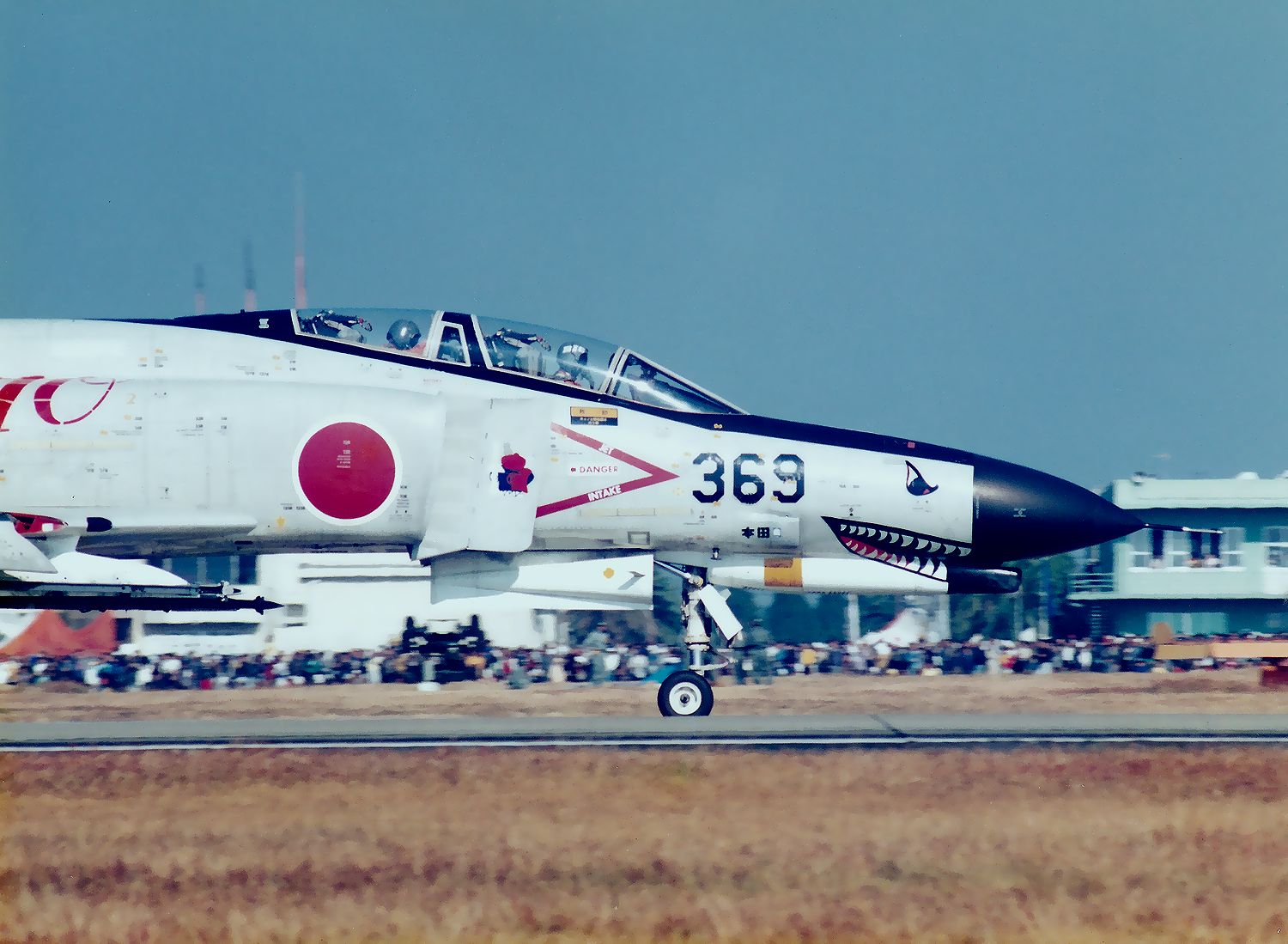 デモフライトを終えてRWタキシーする301SQのF4EJの機首のアップです。
