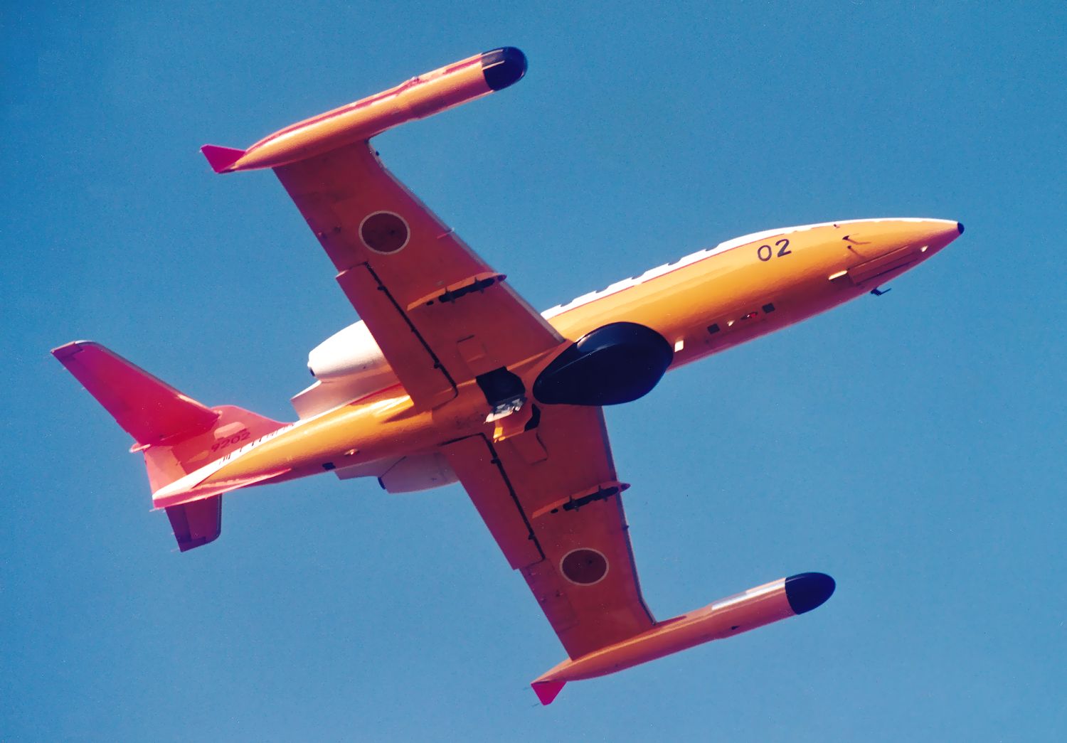 浜松基地の航空教育集団に帰る導入間もないT4練習・連絡機(上写真)、