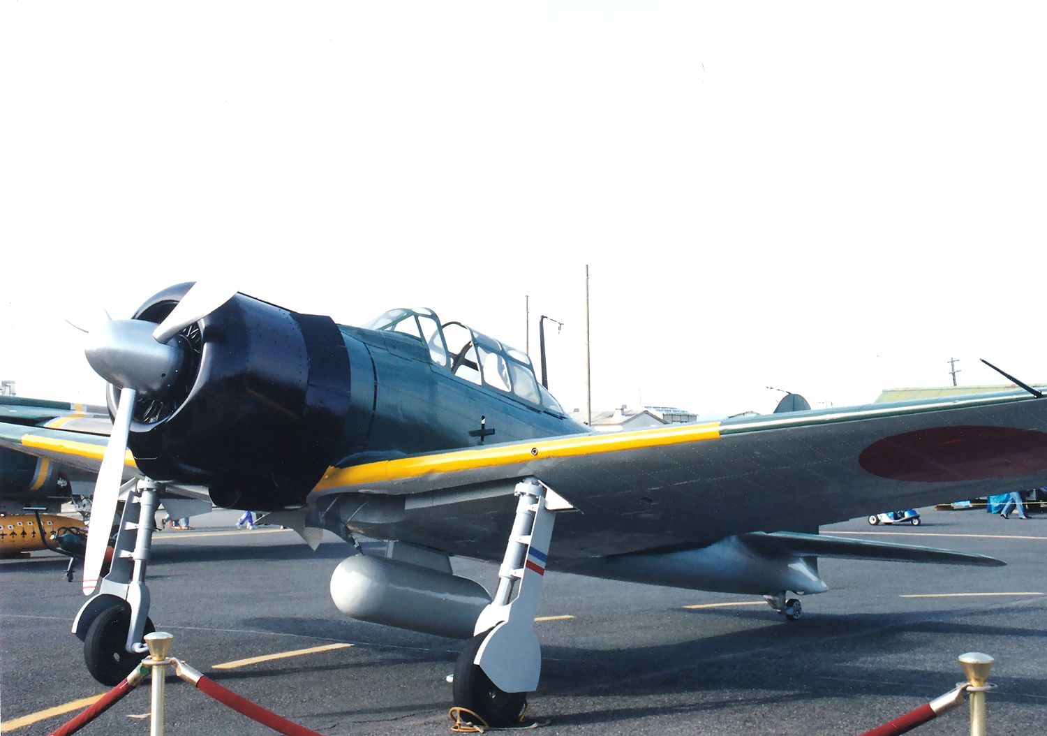 ネットによりますと、この機体は、日本の東宝映画「零戦燃ゆ」(1984年)のために製作された零戦二一型のレプリカで、現在、海上自衛隊岩国基地に保存・公開中だそうです。