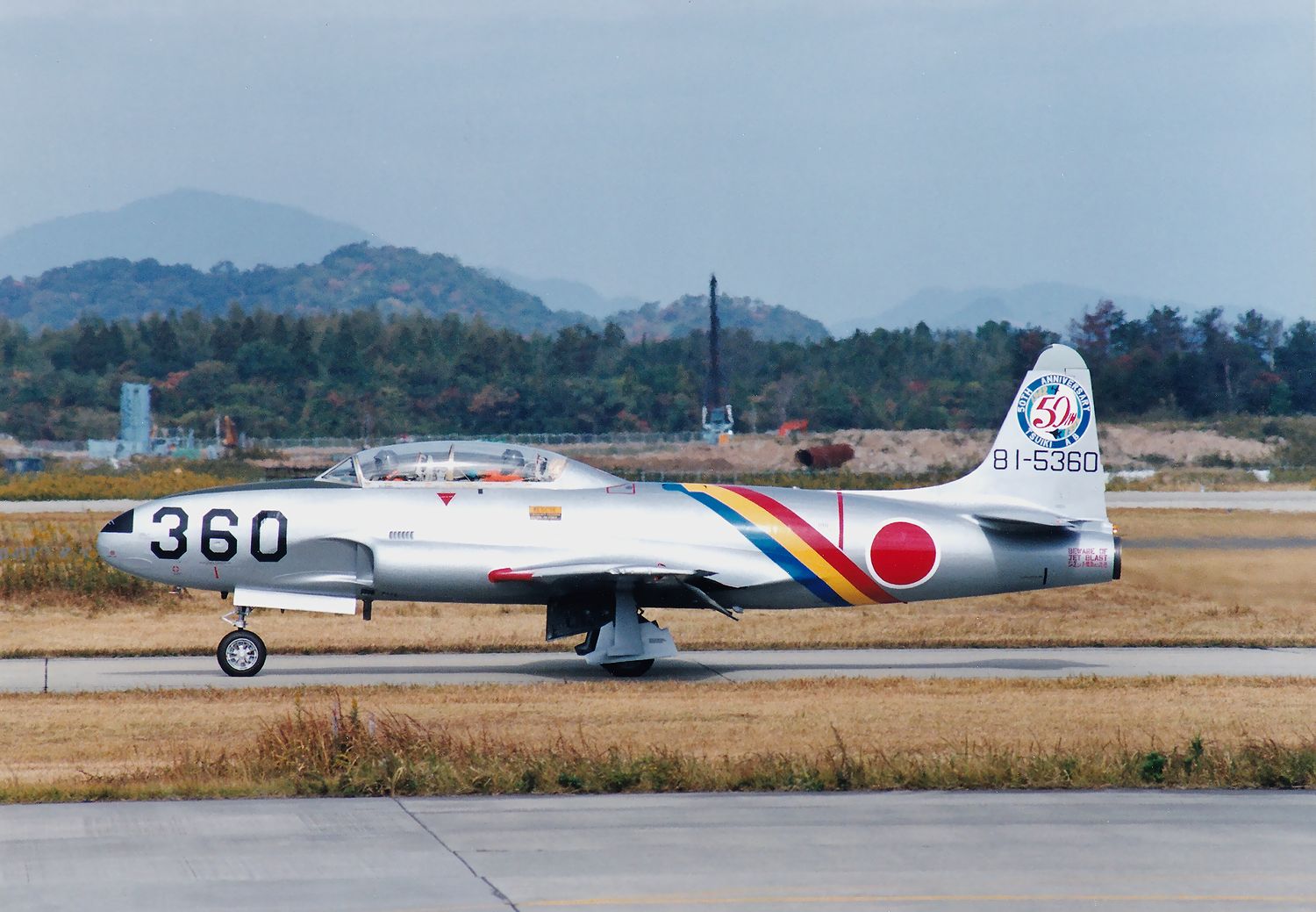 | これは、1992年11月8日(日)の築城基地航空祭終了後に、芦屋基地に帰る第13飛行教育団のT1ジェット練習機です。 |